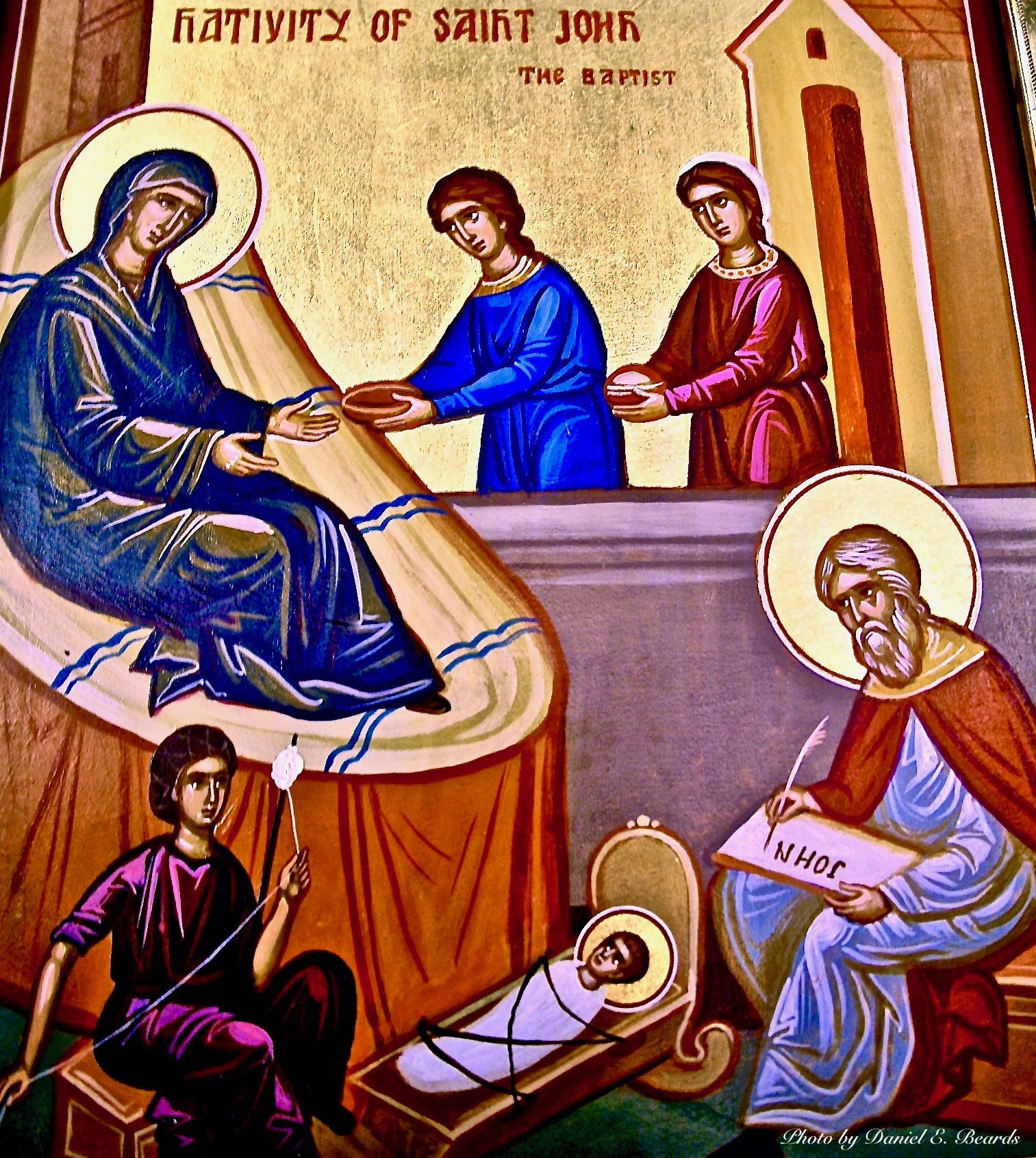 This icon represents the Nativity of St. John The Baptist. The original icon dates back to 16th century Russia. The original icon is presently located in the State Hermitage, St. Petersburg Russia