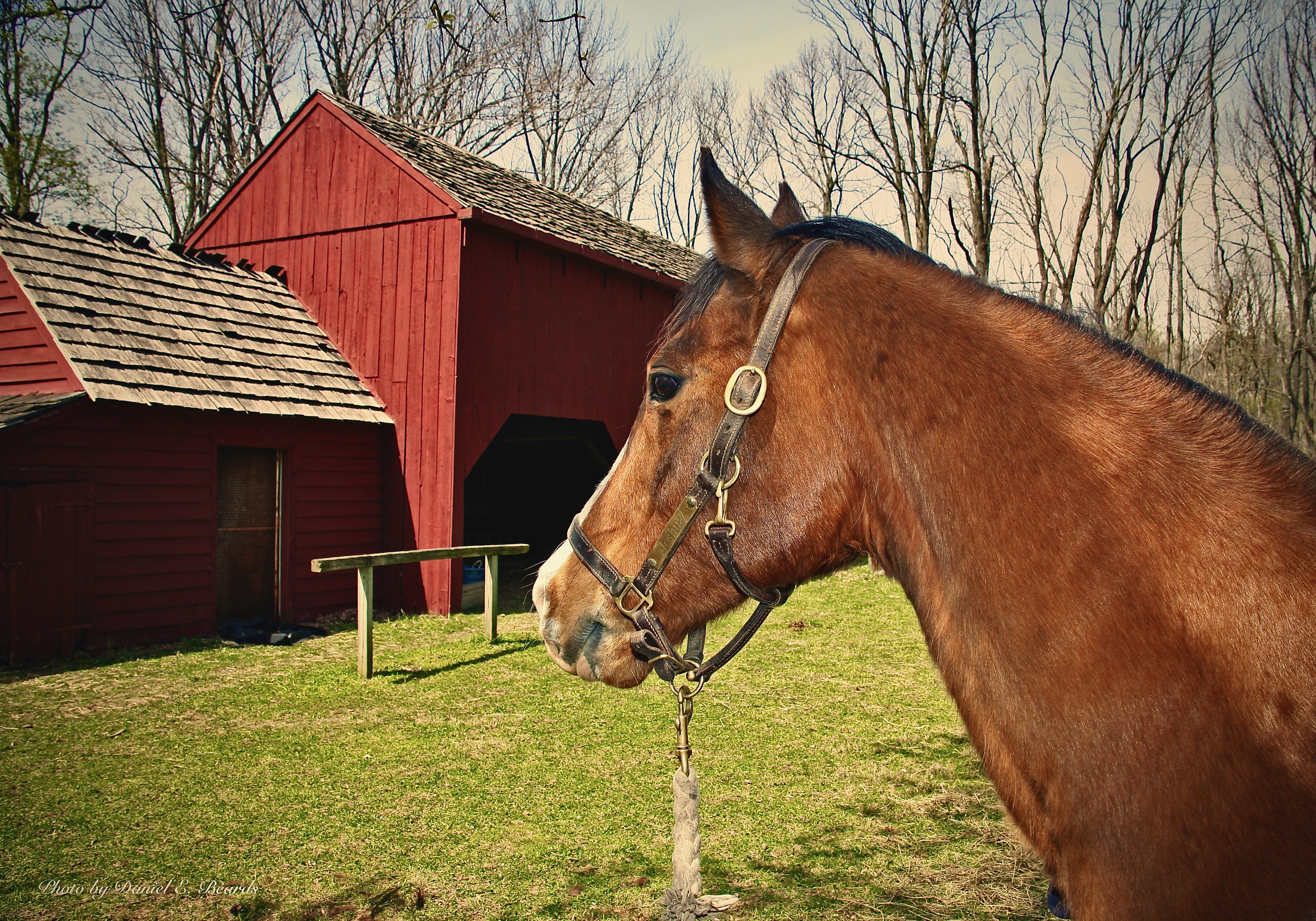 Rather than put the horse to pasture or out in the barn, she laid down a feather bed on the floor of one of the bedrooms to muffle the sound of the horses hooves. There the horse remained hidden when, shortly thereafter, the soldiers came looking for him. They searched the barn and in the woods surrounding the home, never thinking that the horse could be inside the house. The horse was safe.