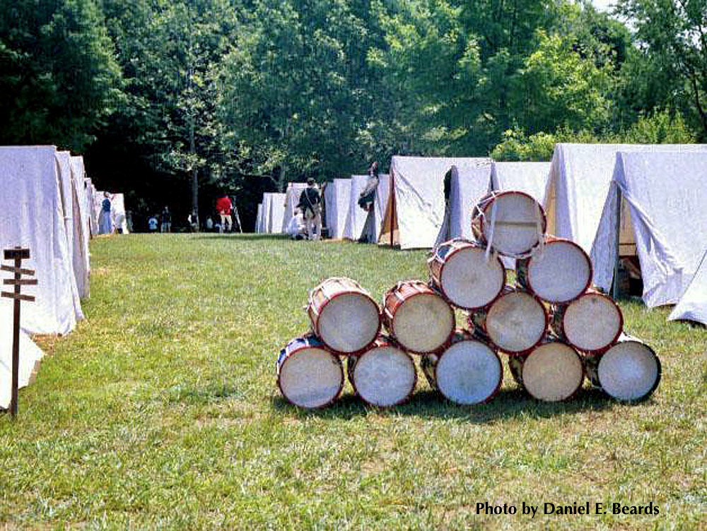 These drums were stacked in the British Camp during the reenactment of 1978 or 2003 reenactment.