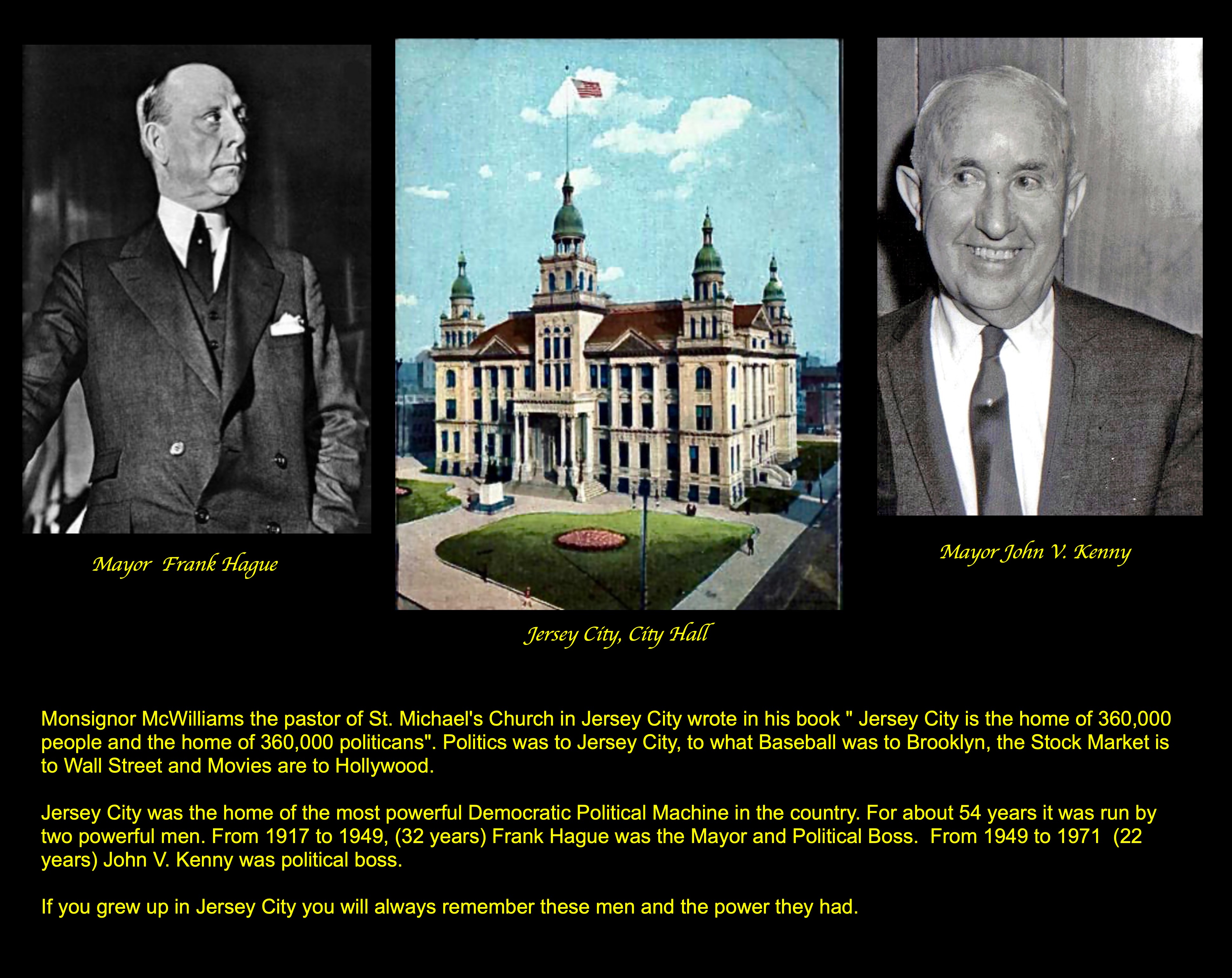 Jersey City the center of the nation's most powerful Democratic Political Machine. It controlled all the cities of Hudson County and much of New Jersey State Politics for over 54 years.