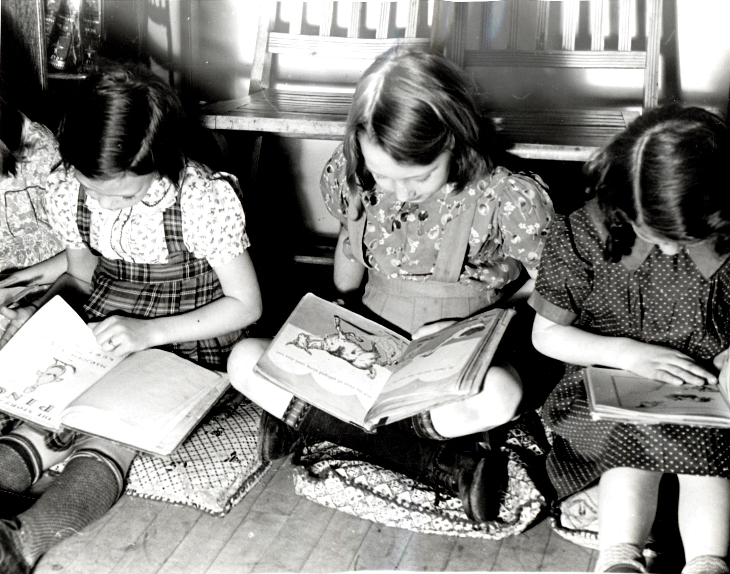 Back of Photo: "Readers in an emergency library in Haledon." Date unknown.