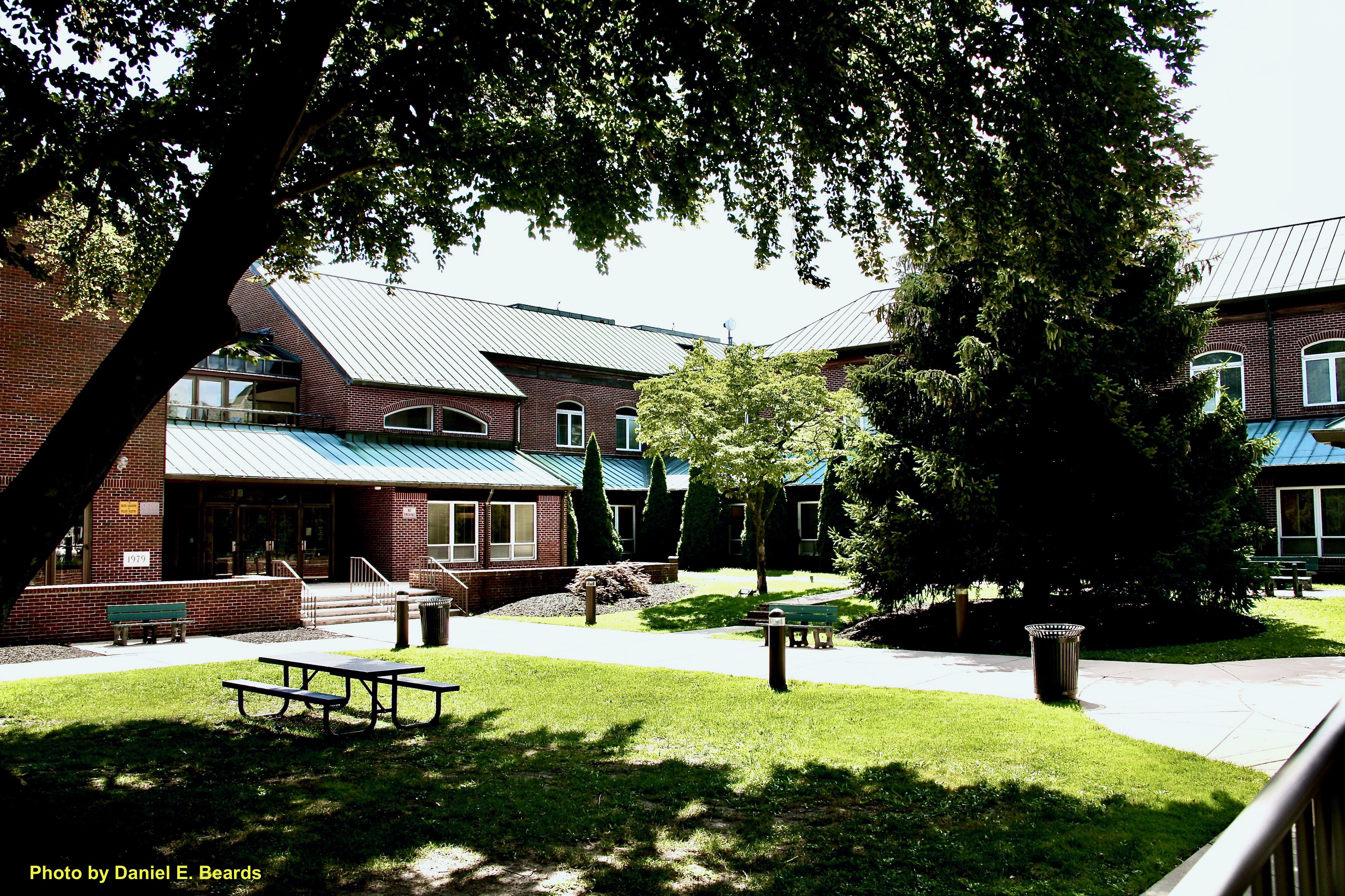 This park setting allows visitors to the library to sit and enjoy a beautiful afternoon on its grounds.