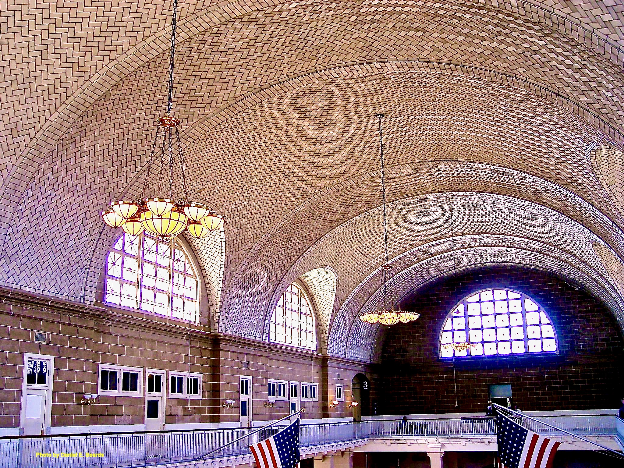 Guastavinotiled arched ceiling, The Registry Room, Ellis Island, Ellis Island Immigration Museum, Liberty State Park, State Park, New Jersey State Park, Gateway to America, Statue of Liberty, Legal Immigration, Gateway, Jersey City, NJ, Jersey, Hudson County, The Garden State, New York Harbor, New York City, NYC, New York, National Register of Historic Places, New Jersey Register of Historic Places, New York City Landmark