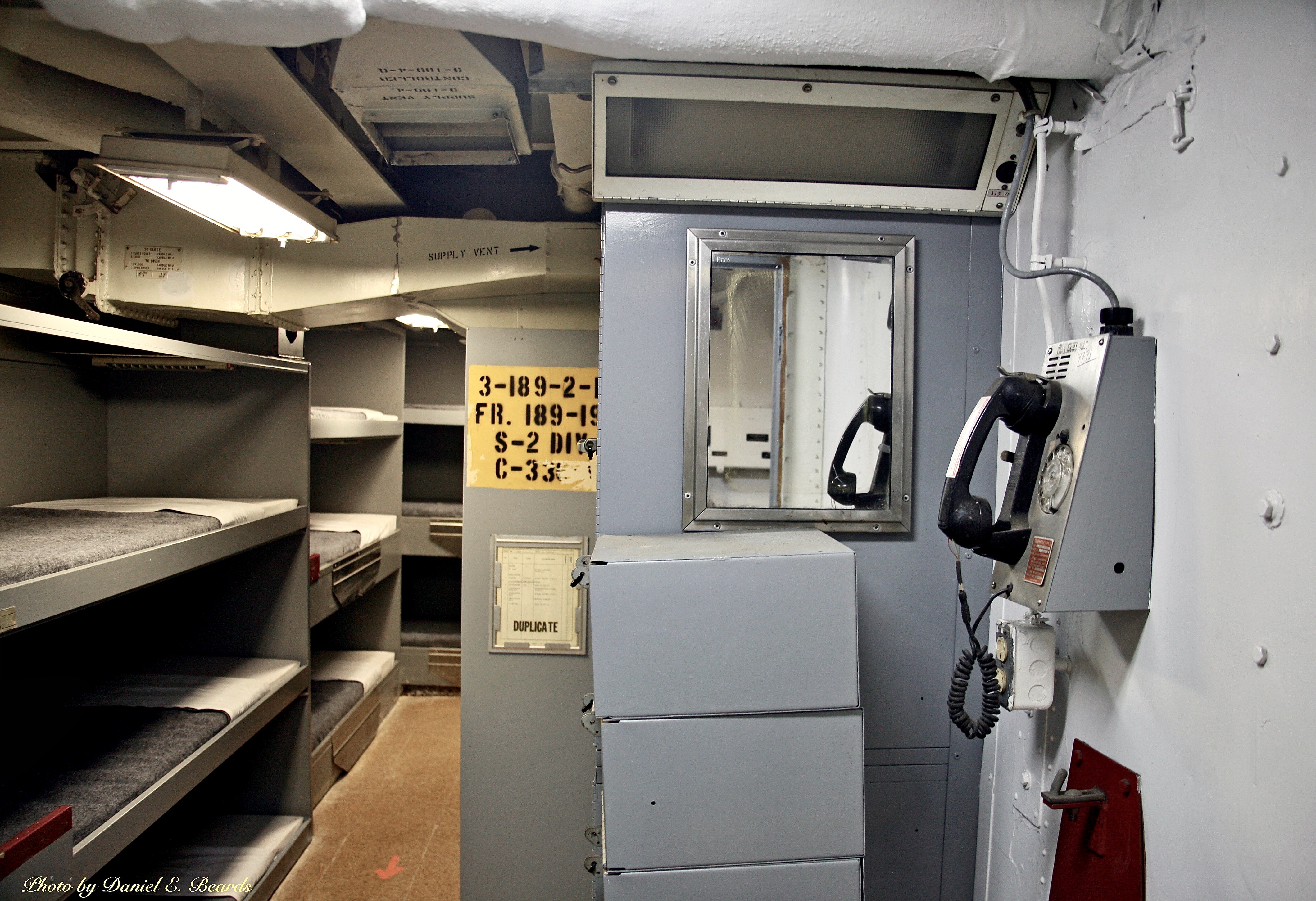 During World War II there were no bunks as shown here. It was just hammocks hanging from rods.