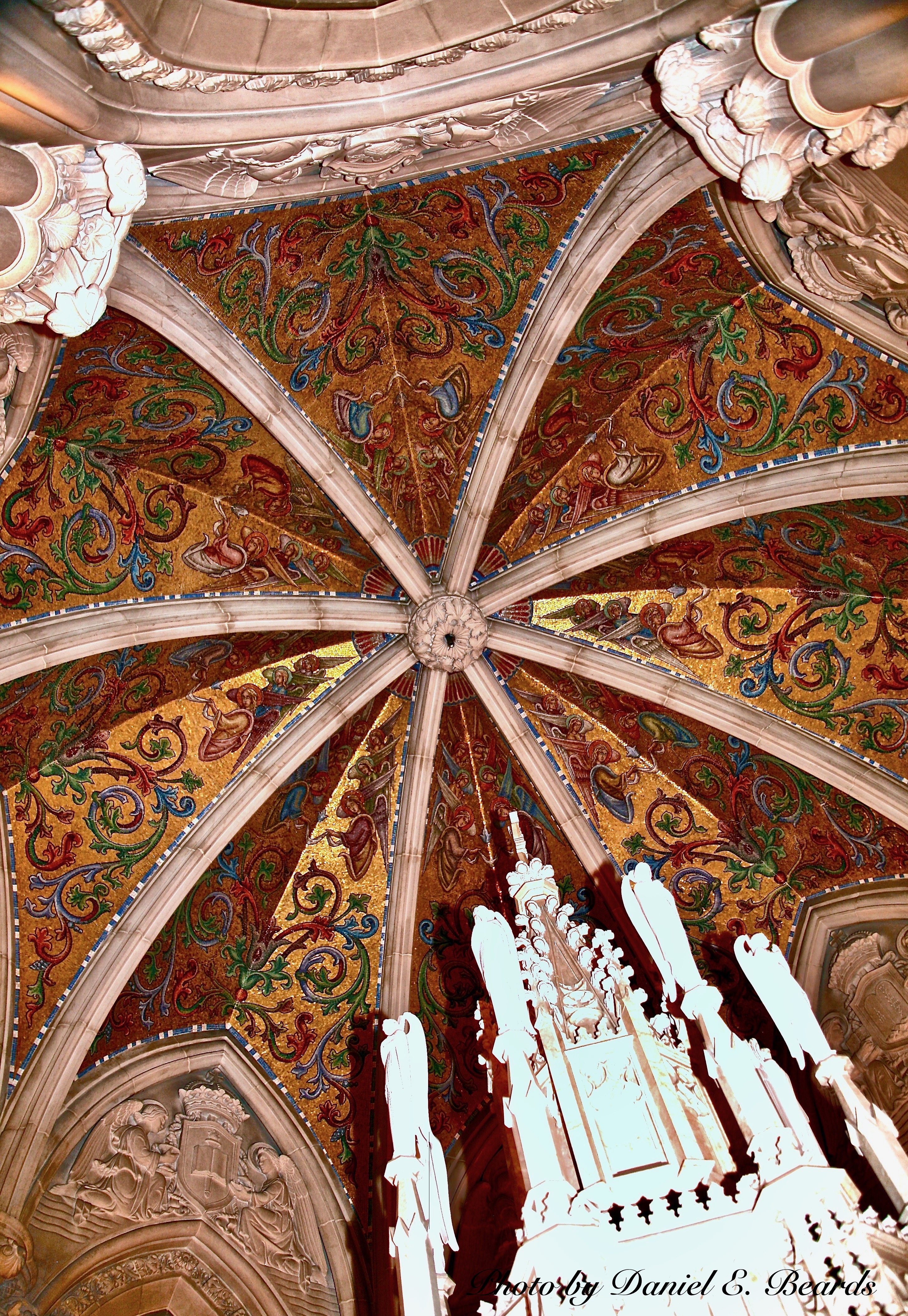 The Ceiling of the Baptistry, The Baptistery in Sacred Heart Cathedral, Basilica, Cathedral, Catholic Church, Catholic, Catholic Basilica, Cathedral of the Sacred Heart, Gothic Cathedral, Gothic Architecture, French Gothic Architecture, Archdiocese of Newark, Church, Gateway, The Gateway Region, Newark, Essex County, New Jersey, Jersey, The Garden State