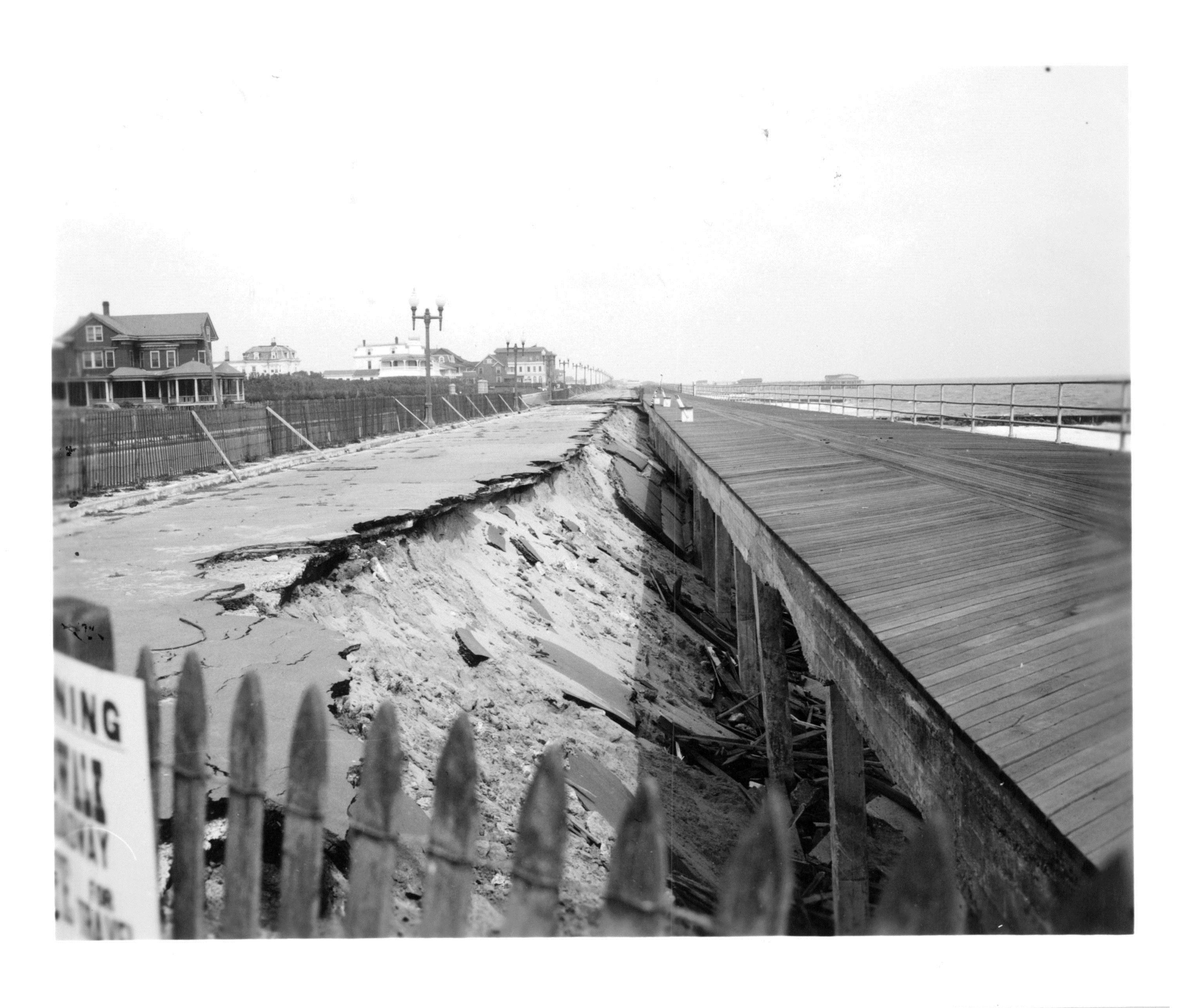 Reverse of Photo: Road Cave-in & boardwalk destruction