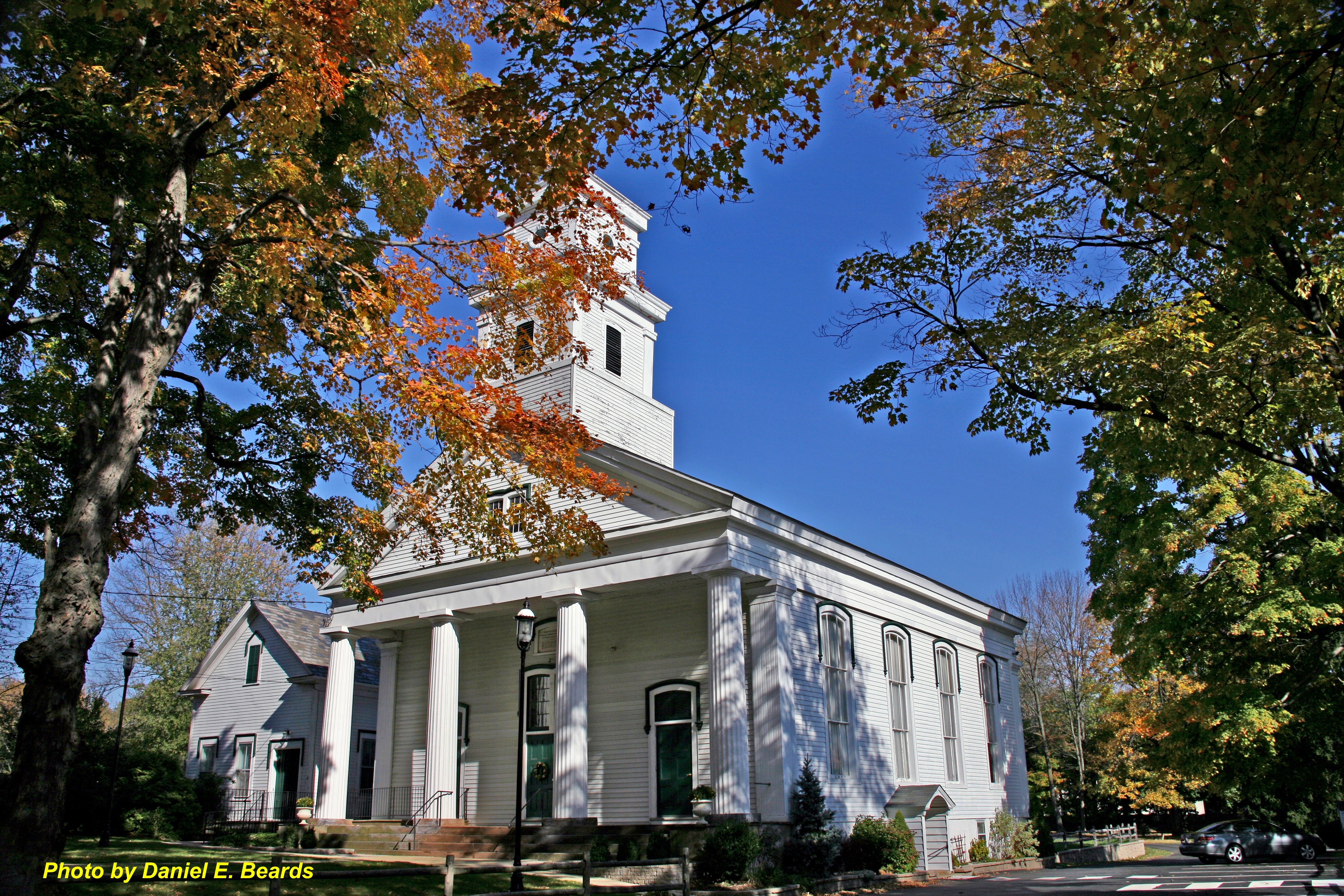 This congregation was founded in 1740. This is the third building used by this congregation, It was built in the Greek Revival style in 1856.