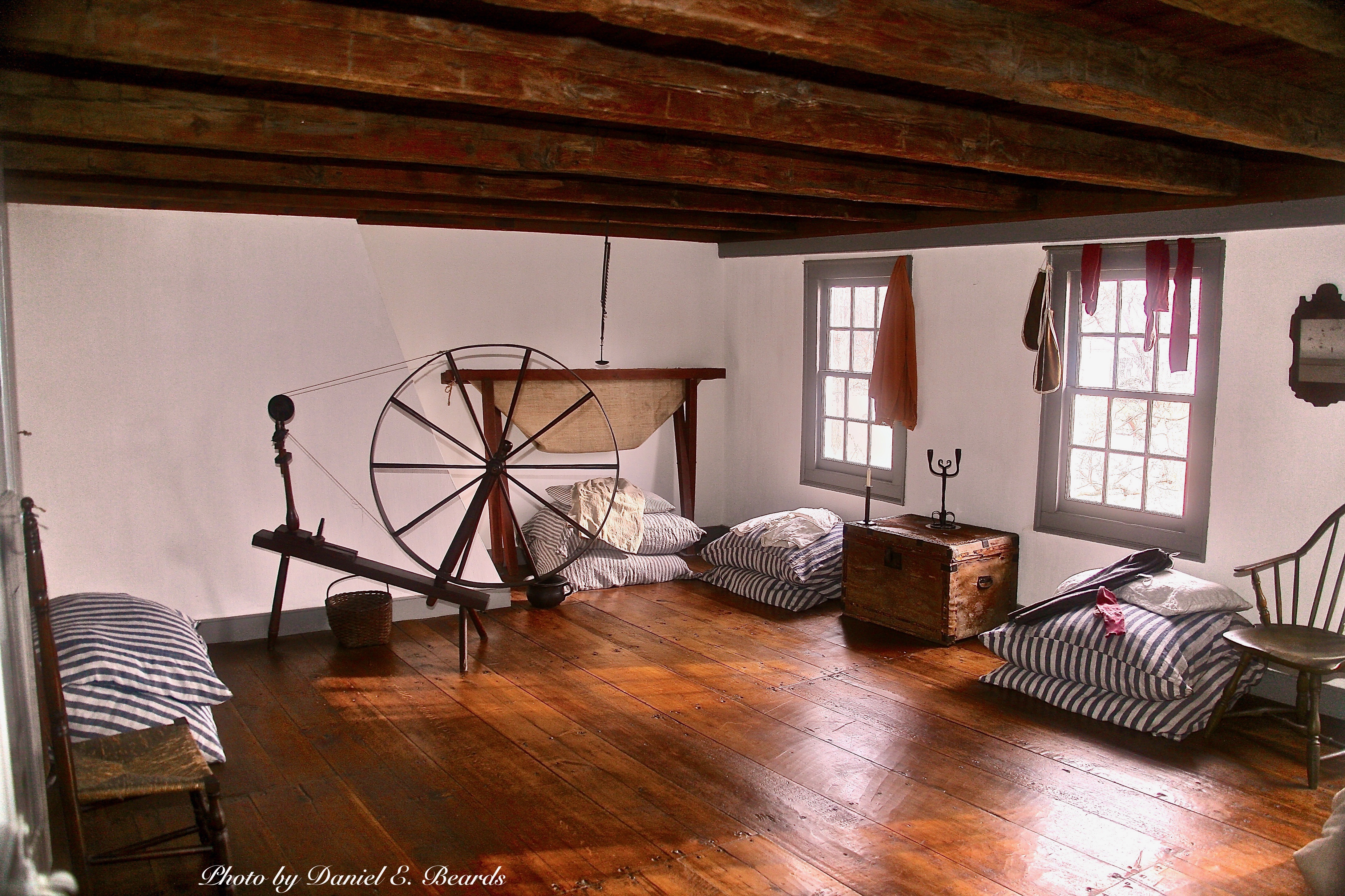 During the encampment of 1779-1780 up to 40 people, servants of Washington, his staff, the Ford Family and their guests could spend the night in this room.