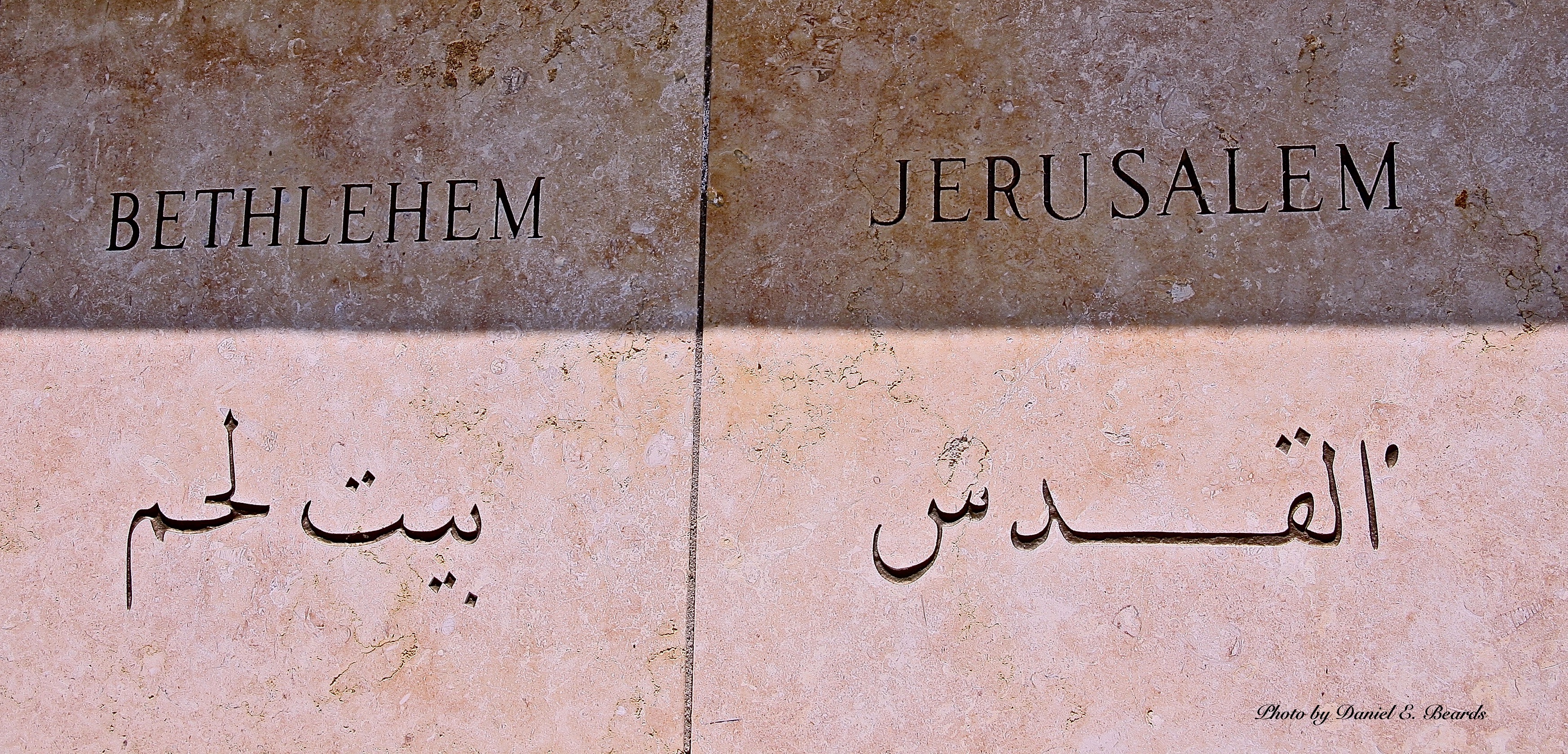Note the names of the two cities carved on the cornerstone. Bethlehem the place where Jesus was born and Jerusalem the city where he died.