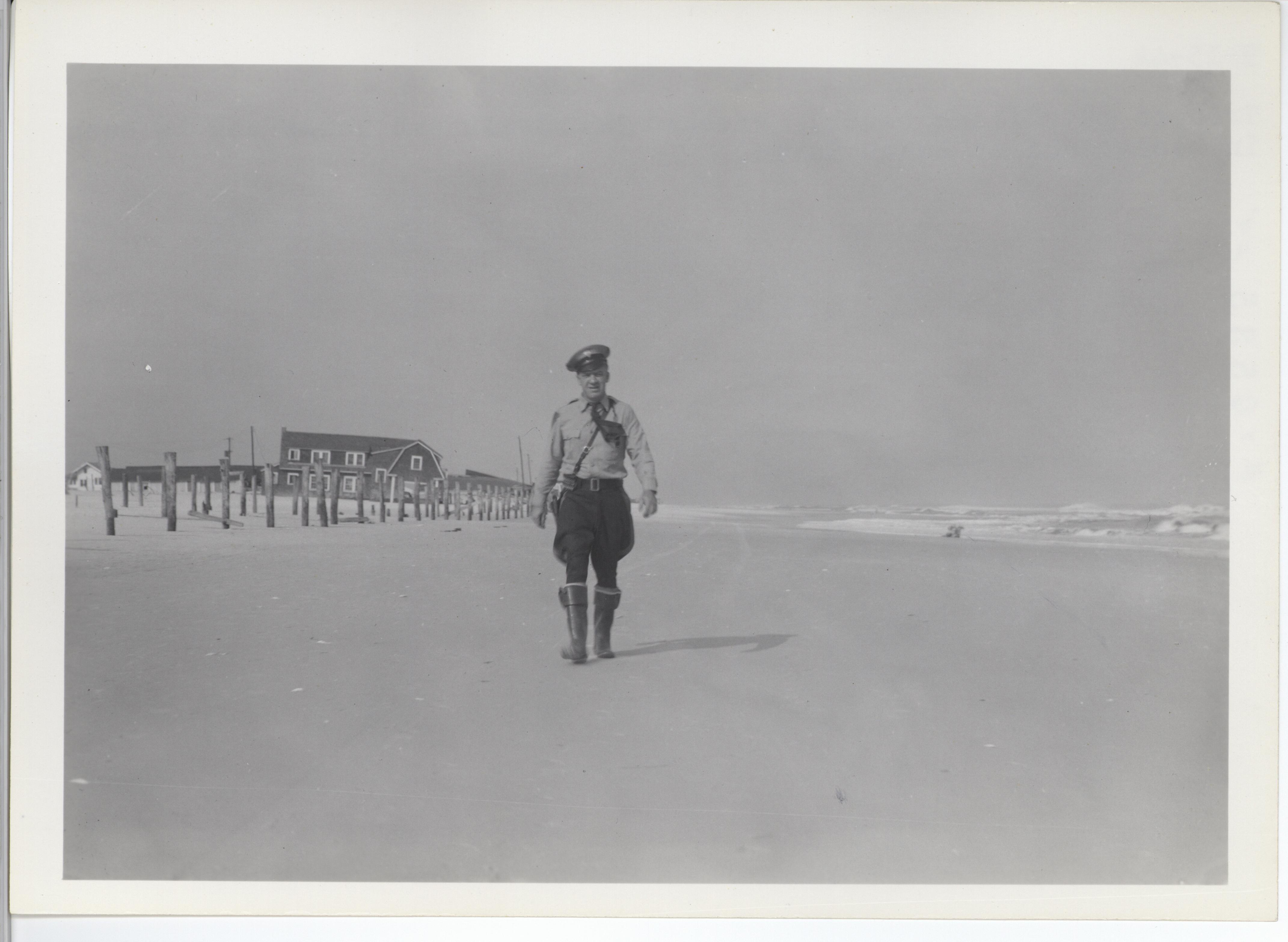 | dc.description | Reverse of Photo: Trooper patrolling beach. Wrecked boardwalk and homes in background | en_US |