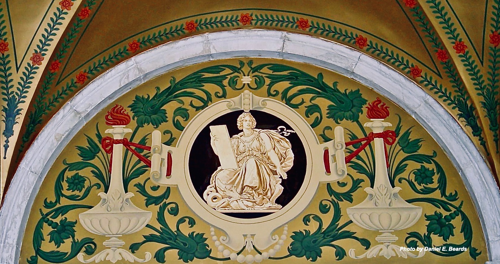 Hugh Roberts selected Francis Davis Millet to become the director of decoration, the same role he had for the 1893 World's Columbian Exposition in Chicago. This is one of Mr. Millet's Lunettes in the Rotunda of the Court House. Mr. Millet would travel to Europe and unfortunately decided to return home on the Titanic.