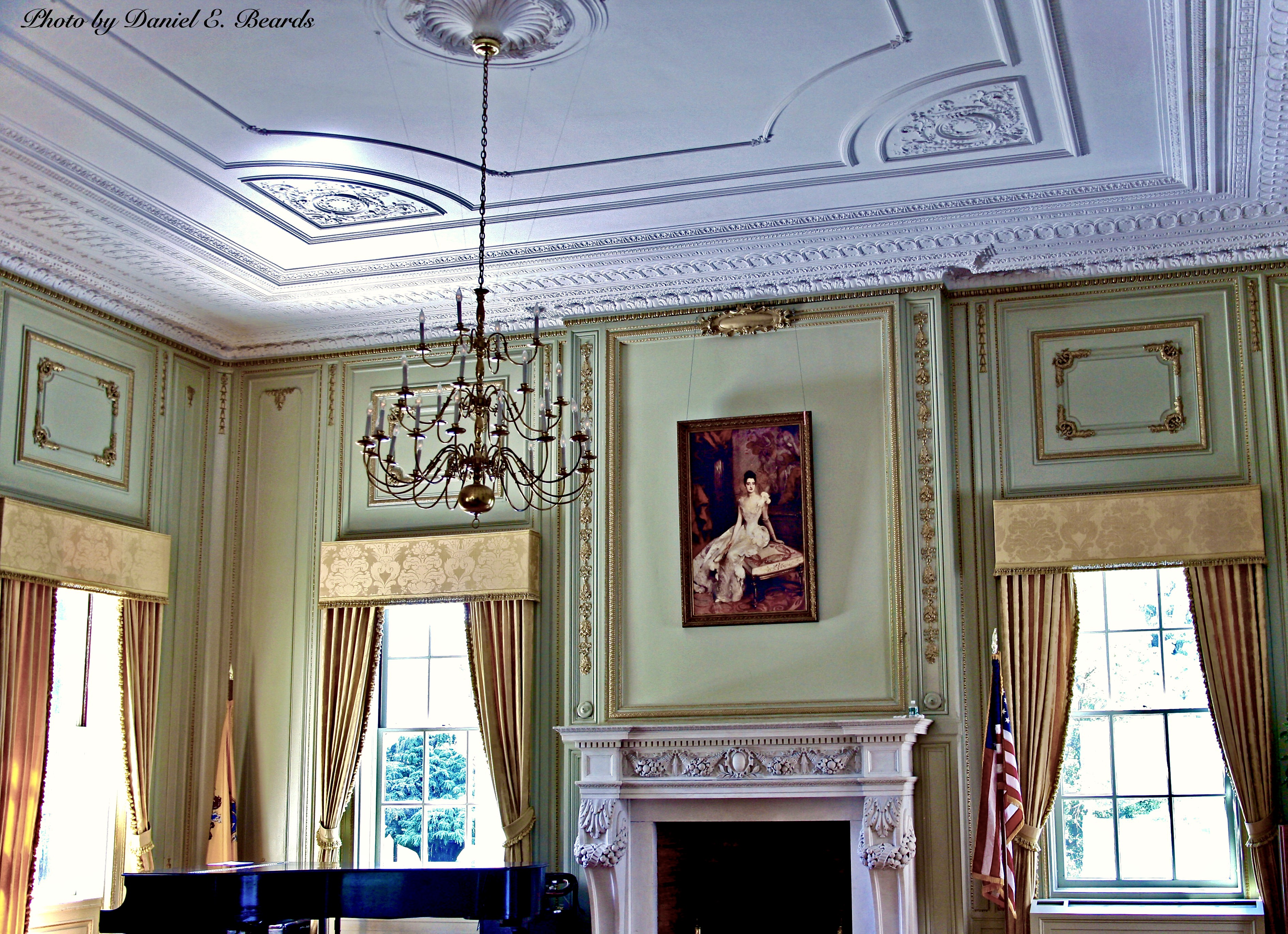 The portrait Florence Adele Vanderbilt Twombly by John Singer Sargent on the western wa;; of the ballroom at Florham.