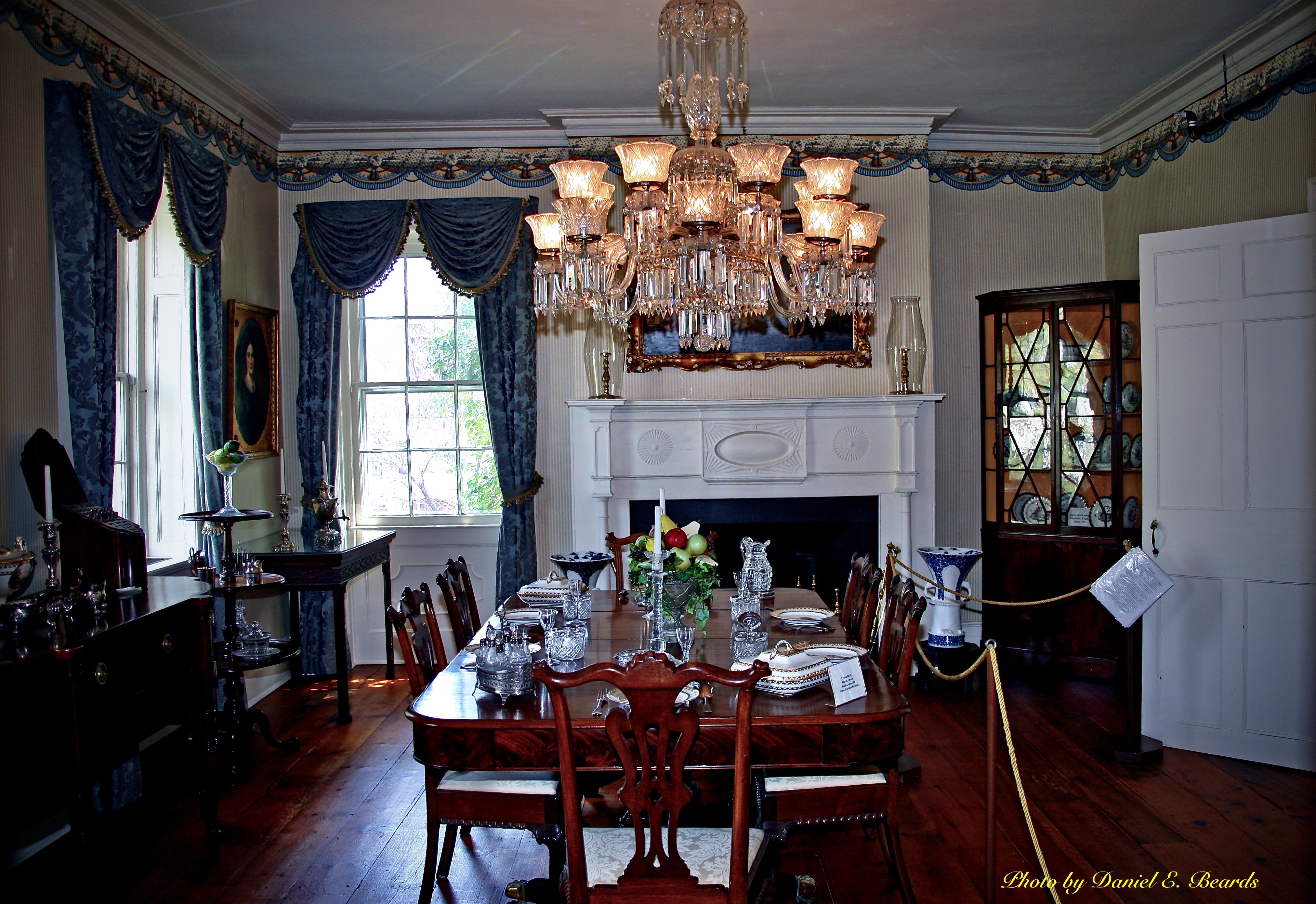 | dc.description | This part of the house was built in 1810. The family ate their meals together in this room. The floorboards and plaster crown molding are original. The carved mantle and panels beneath the windows were added in 1812 when the grand center hall was added. The cabinet in the south west corner belonged to the Macculloch family. | |