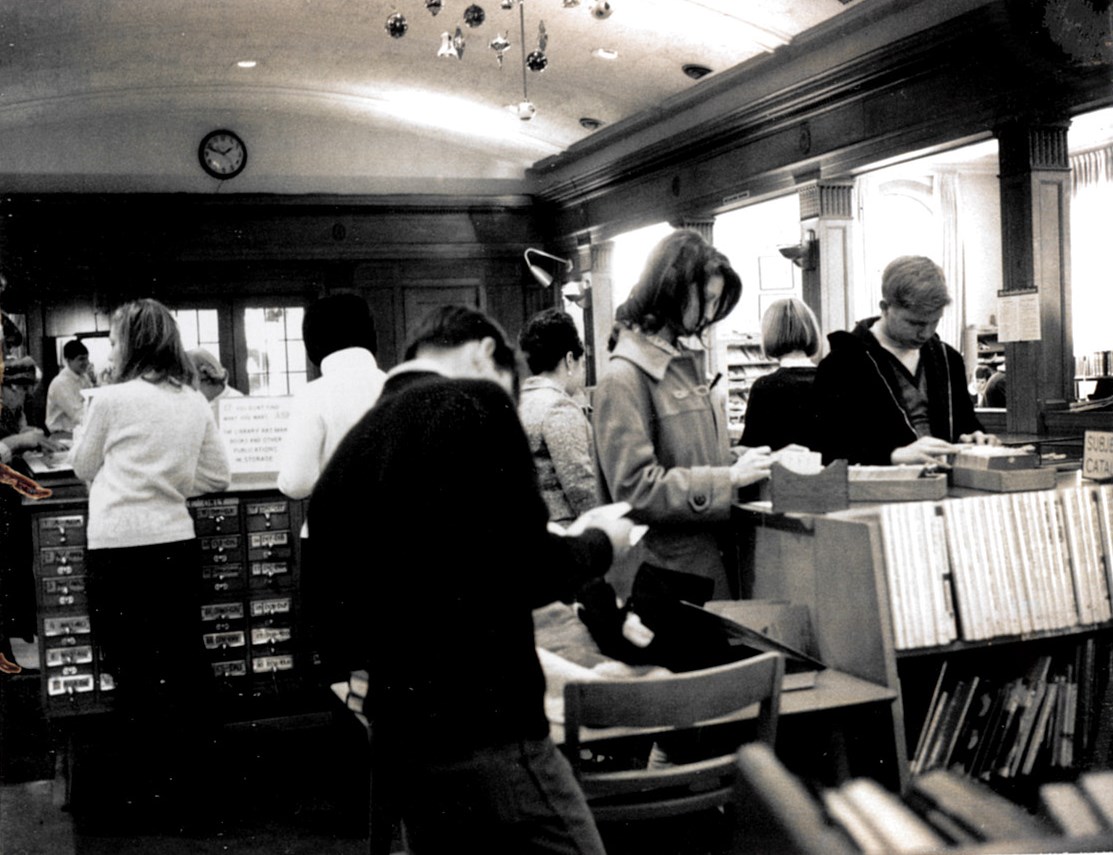Description: "At the card catalog - main desk. December 29, 1966."