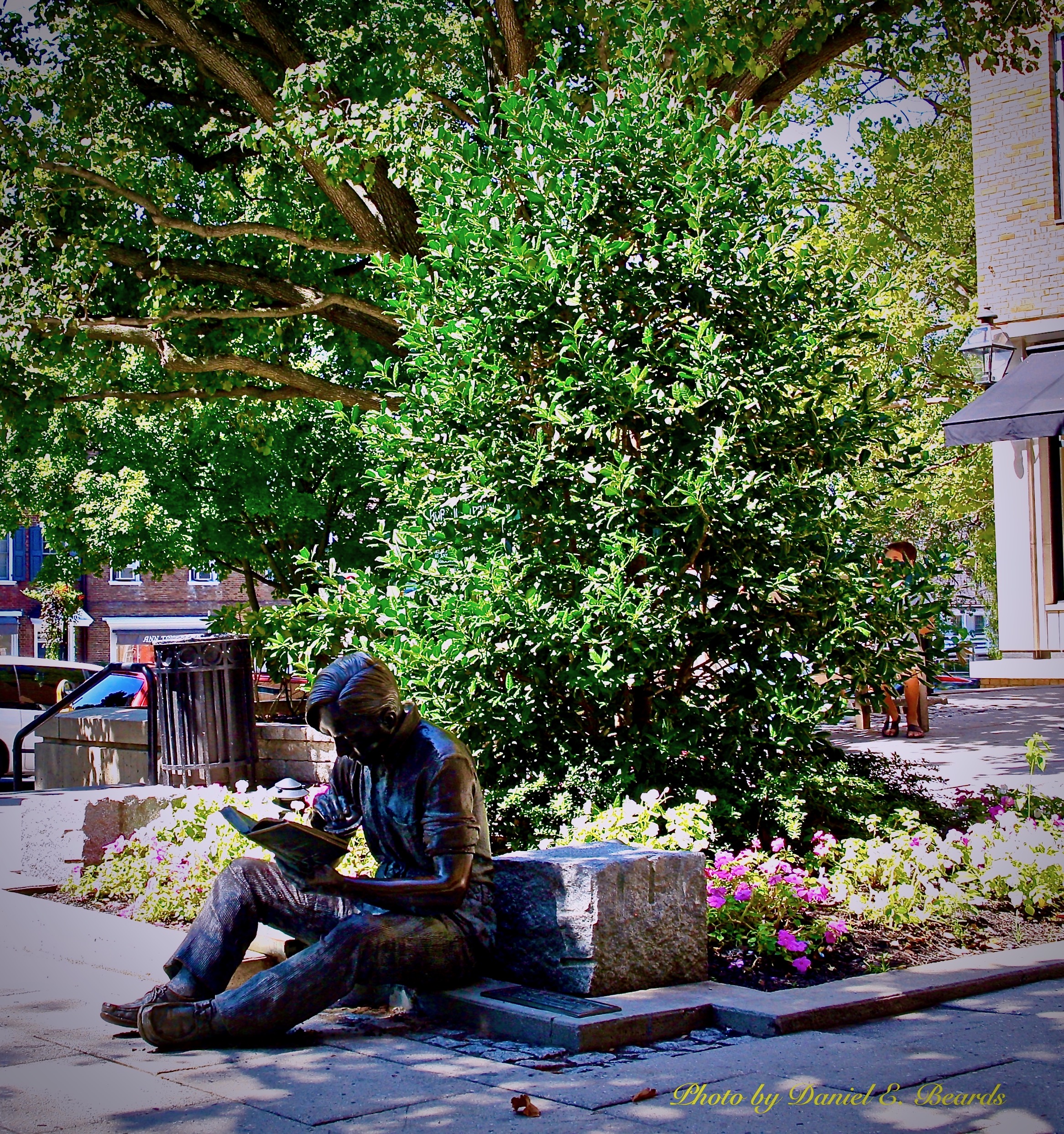 Located in Palmer Square, this statue was created by J. Seward Johnson, Jr. the disinherited heir to the Johnson & Johnson company. He is famous for his uncannily realistic, meticulously worked bronze figures of postmen, matrons, policemen, doctors and businesswomen dot parks and plazas from Rockefeller Center to Hong Kong Harbor.