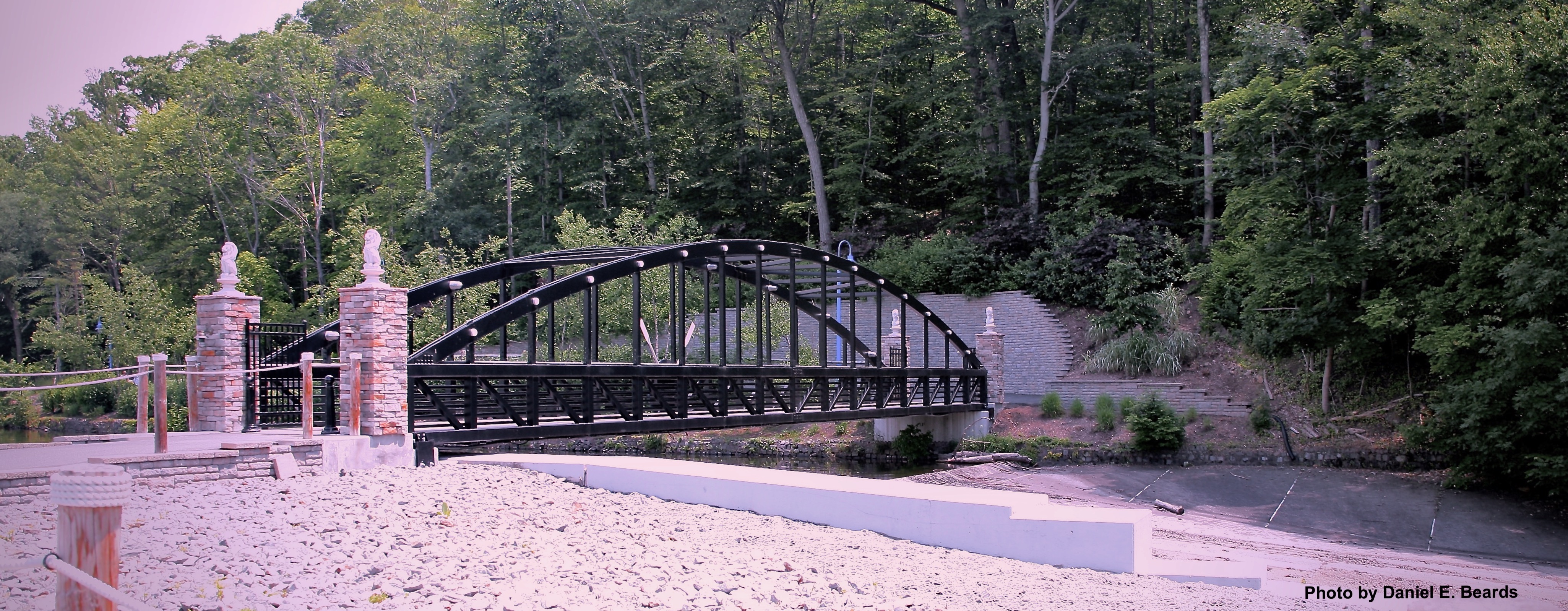 This aluminum bridge is arched, is eighty-four feet in length, and spans across the Reservoir�s dam.