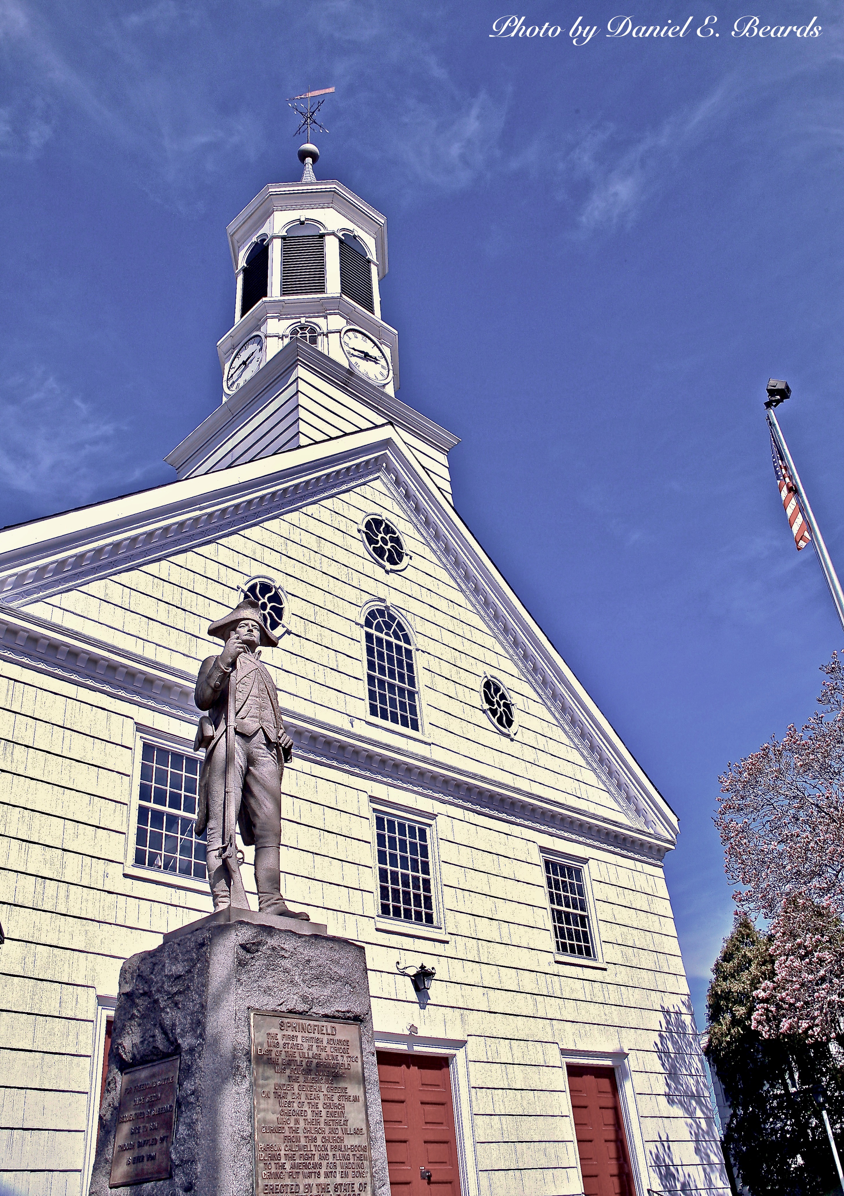The Springfield Minuteman Monument stands in front of The First Presbyterian Church. It overlooks the area that saw much of the fighting on June 23, 1780.