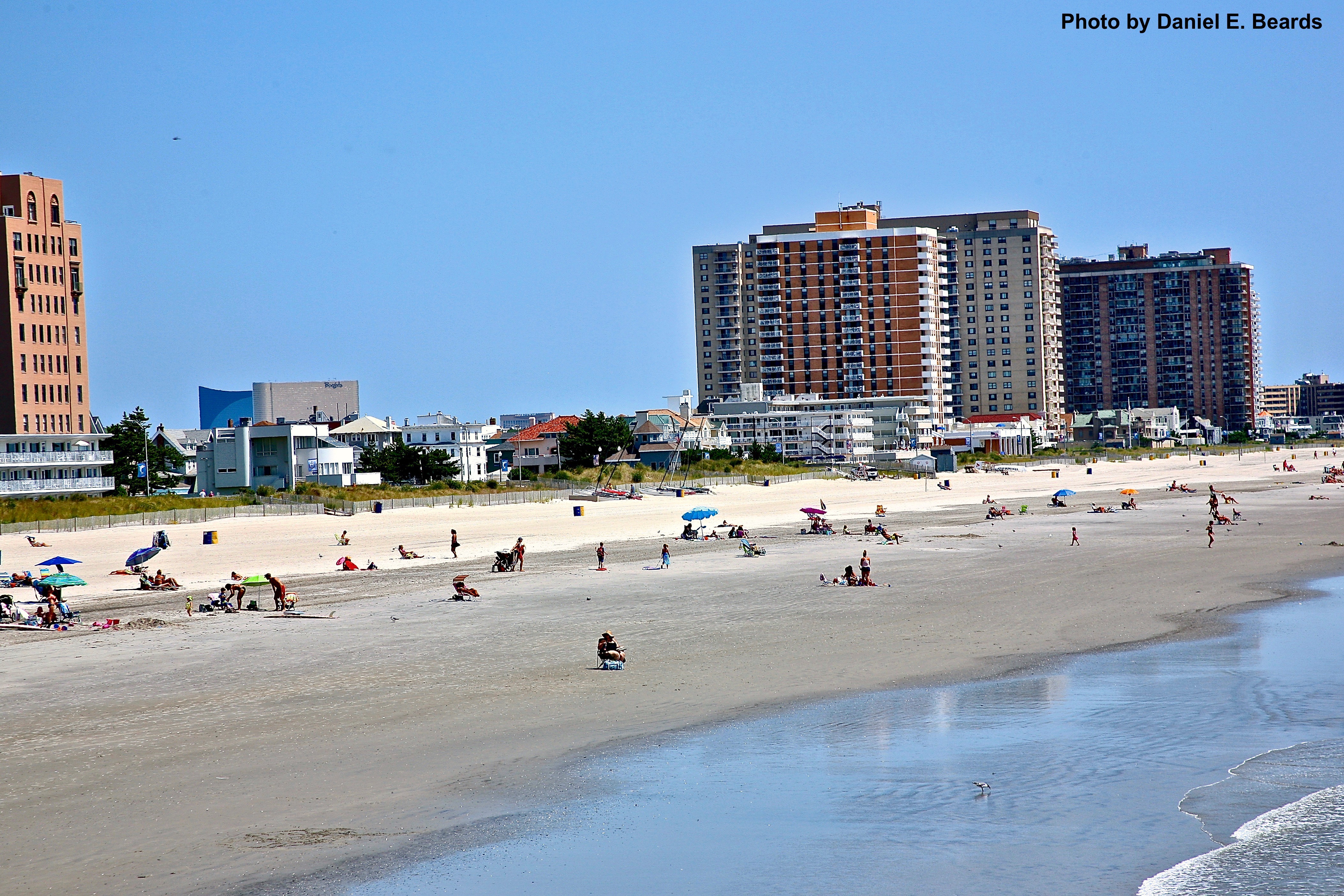 This picture from the Ventnor Beach shows several of the beautiful boardwalk condominiums