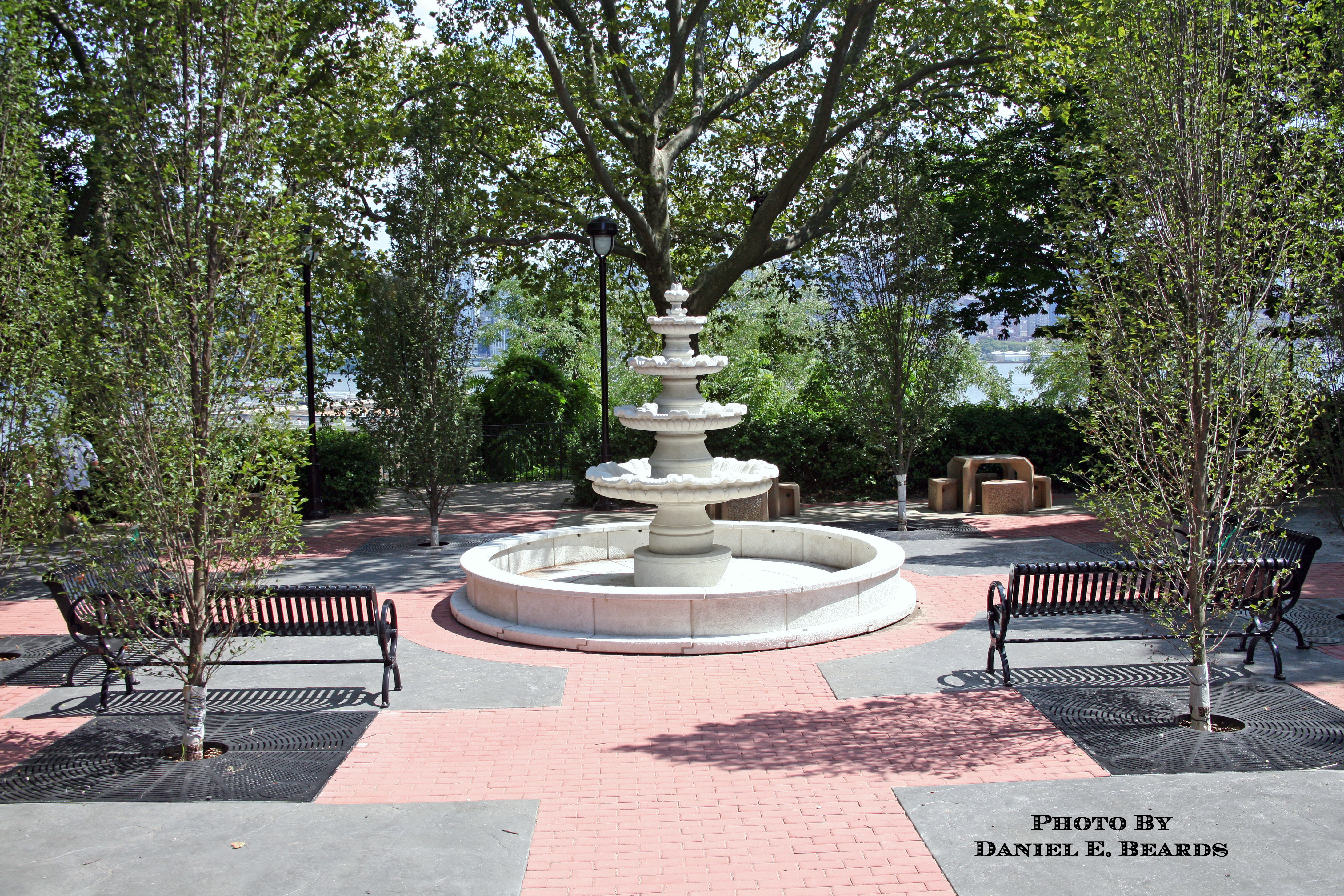 Located on Boulevard East in Weehawken is Garden Park is a small but beautifully landscaped area with benches, a fountain and greenery.