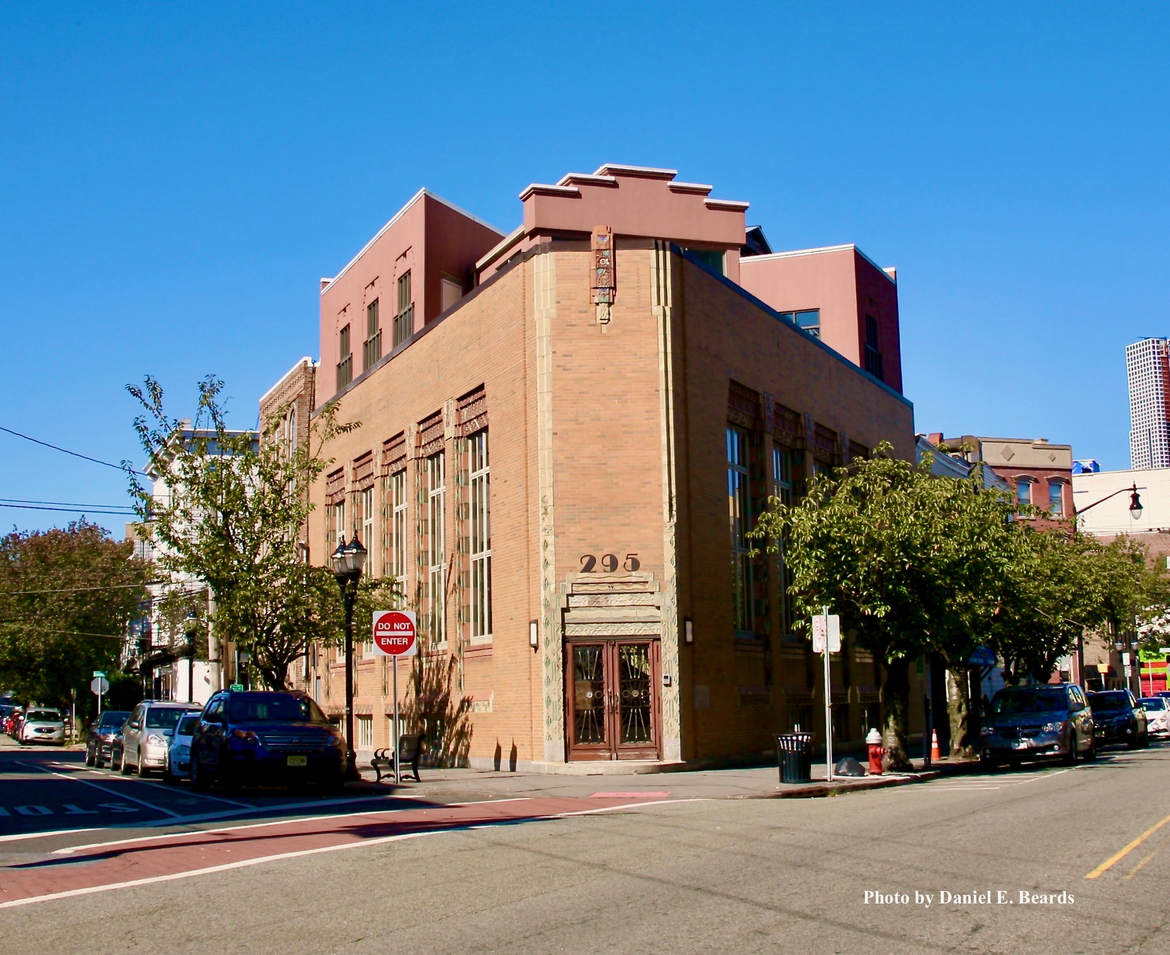 This Art Deco building commands a triangular lot on the corner of Newark Avenue near Third and Brunswick and you�d wonder what it is, was and will be. Built in 1929, it was formerly a bank, then became a police station. Now it houses office space.