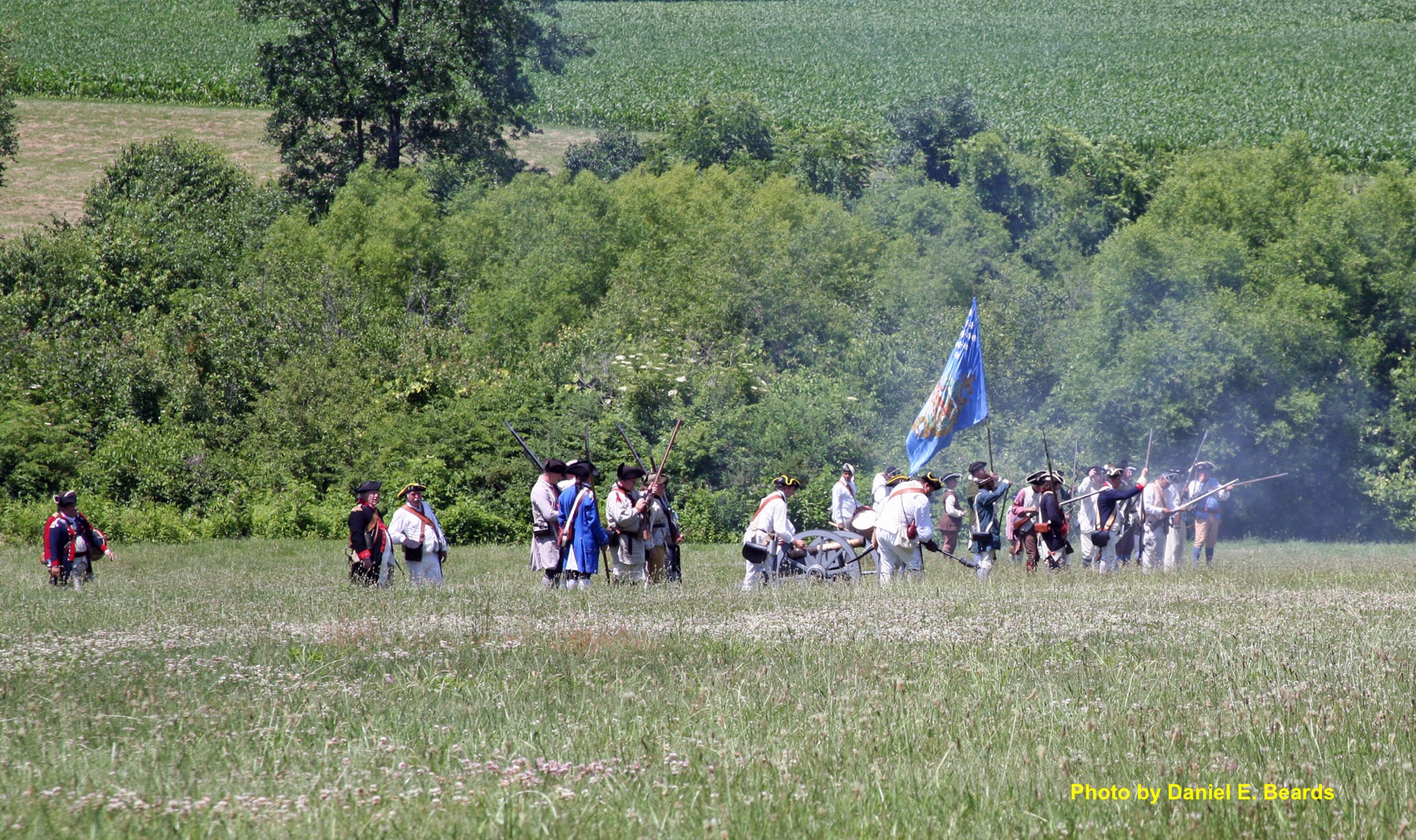 While the Americans get their cannon ready to fire, the muskets open fire on the British position.