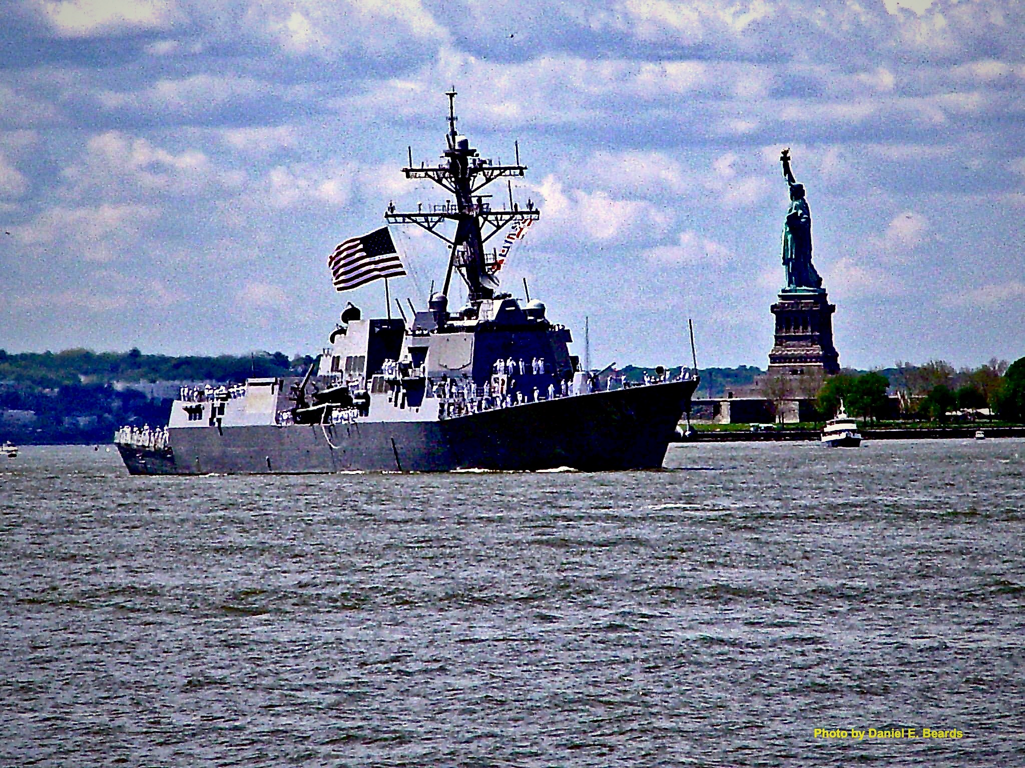 The USS Nitze Sailing Past The Statue of Liberty