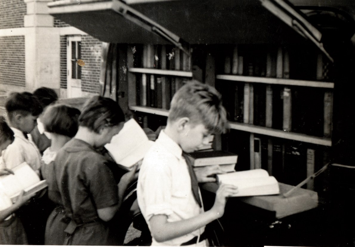 New Egypt School Children Selecting Books from the County Book Truck