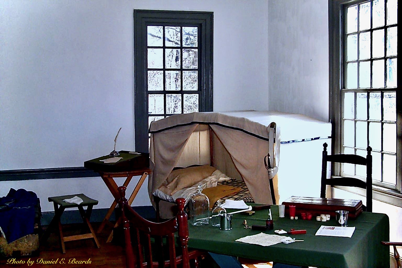 The aides most likely utilized these folding camp beds, which were used when camping in tents during the campaign season. Officers had to buy their own beds and each bed was custom made for the user.