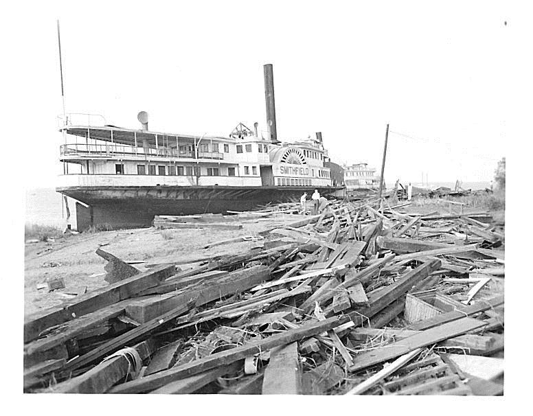 Reverse of Photo: Passenger boat grounded and debris from wharf and piers at Keypot, N.J.