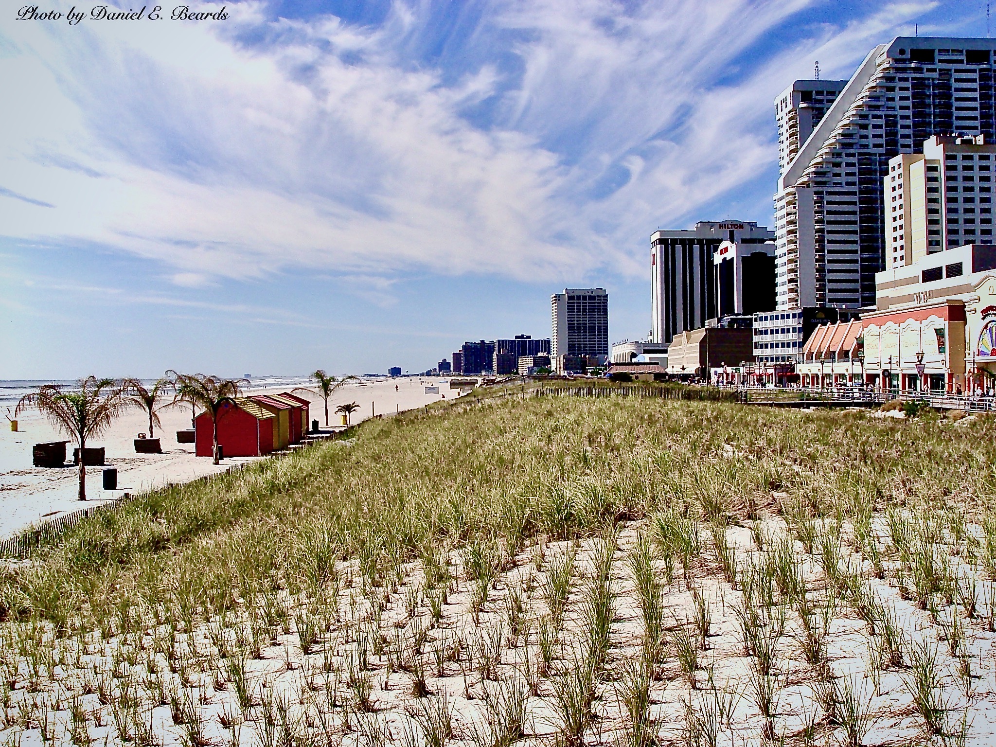 The is a view of the southern part of the Atlantic City Beach and Boardwalk from the Tropicana Gazebo.