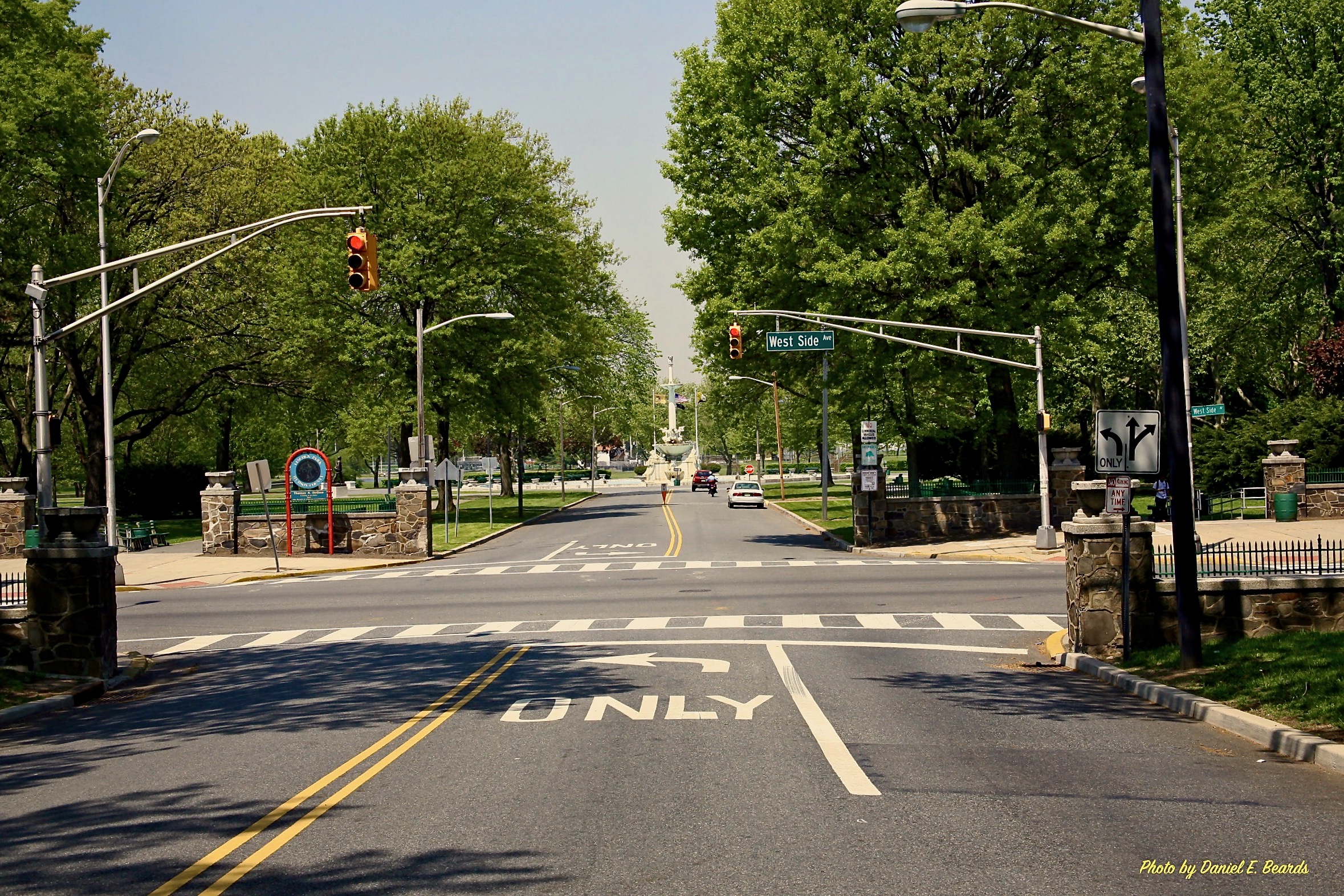 This promenade leads from the main entrance of the Park on Kennedy Boulevard down the hill to the Lincoln Park Fountain and the lake and facilities beyond,