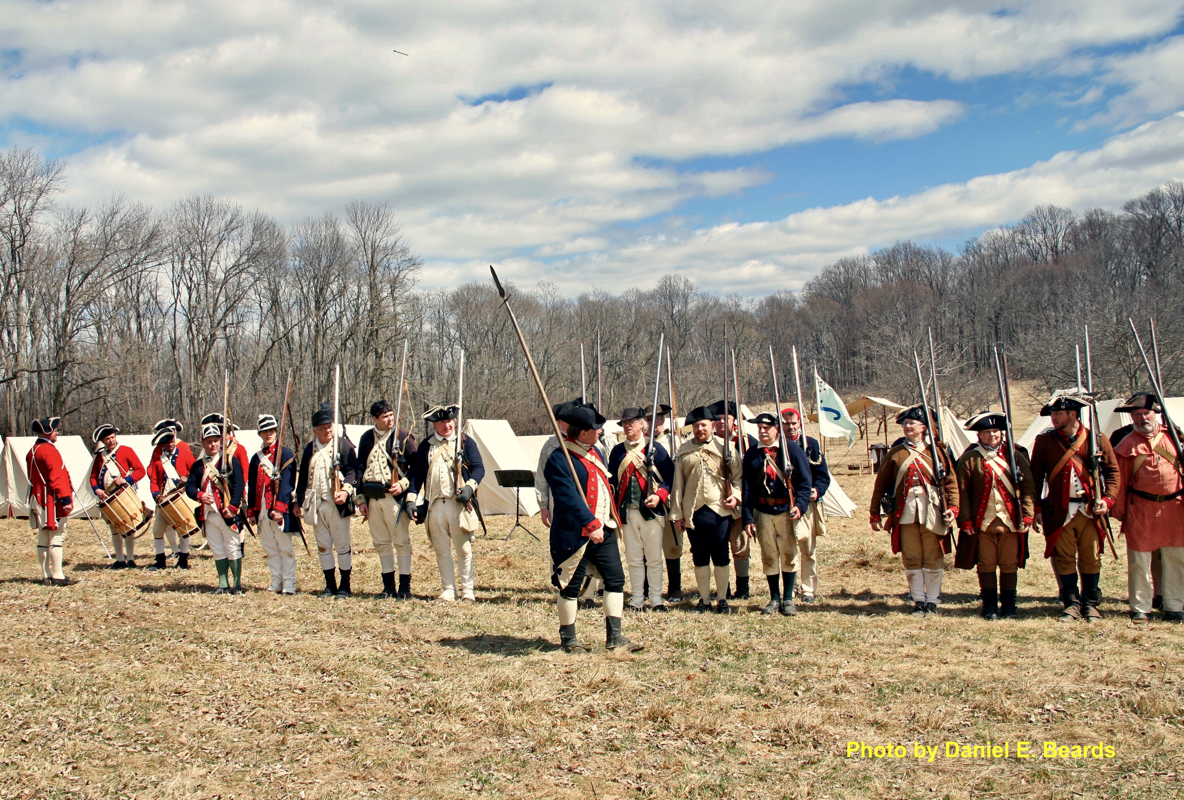 Reenactors begin to march out onto the field to recreated the drilling and matching used by the Continental Army