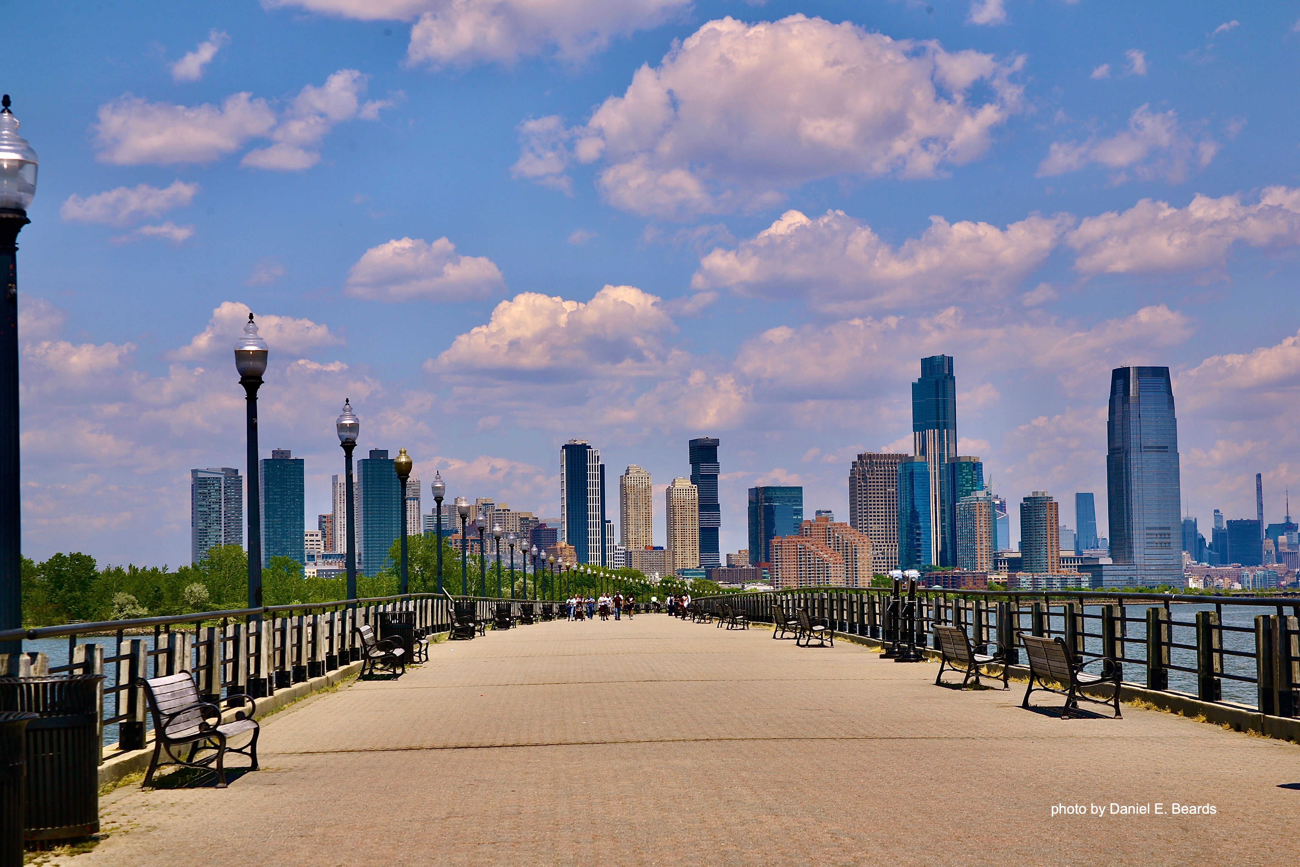 A two-mile walking, jogging, biking, and roller-blading path along the waterfront with an awesome backdrop of panoramic views of the lower Manhattan skyline, Ellis Island and the Statue of Liberty.