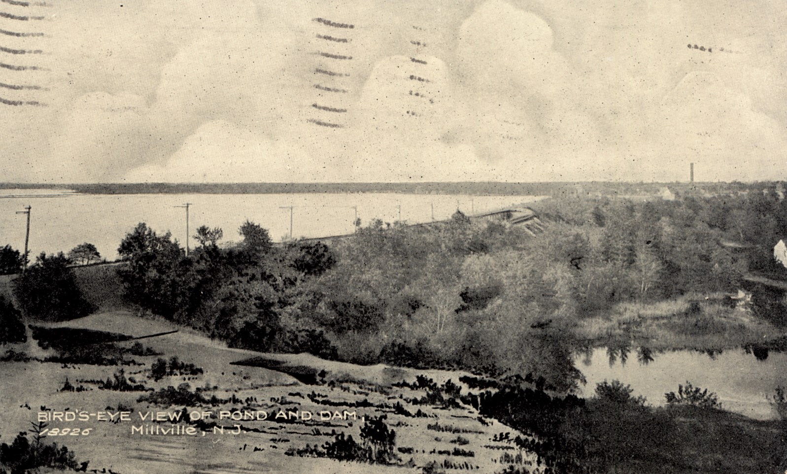 Bird's-Eye View of Pond and Dam