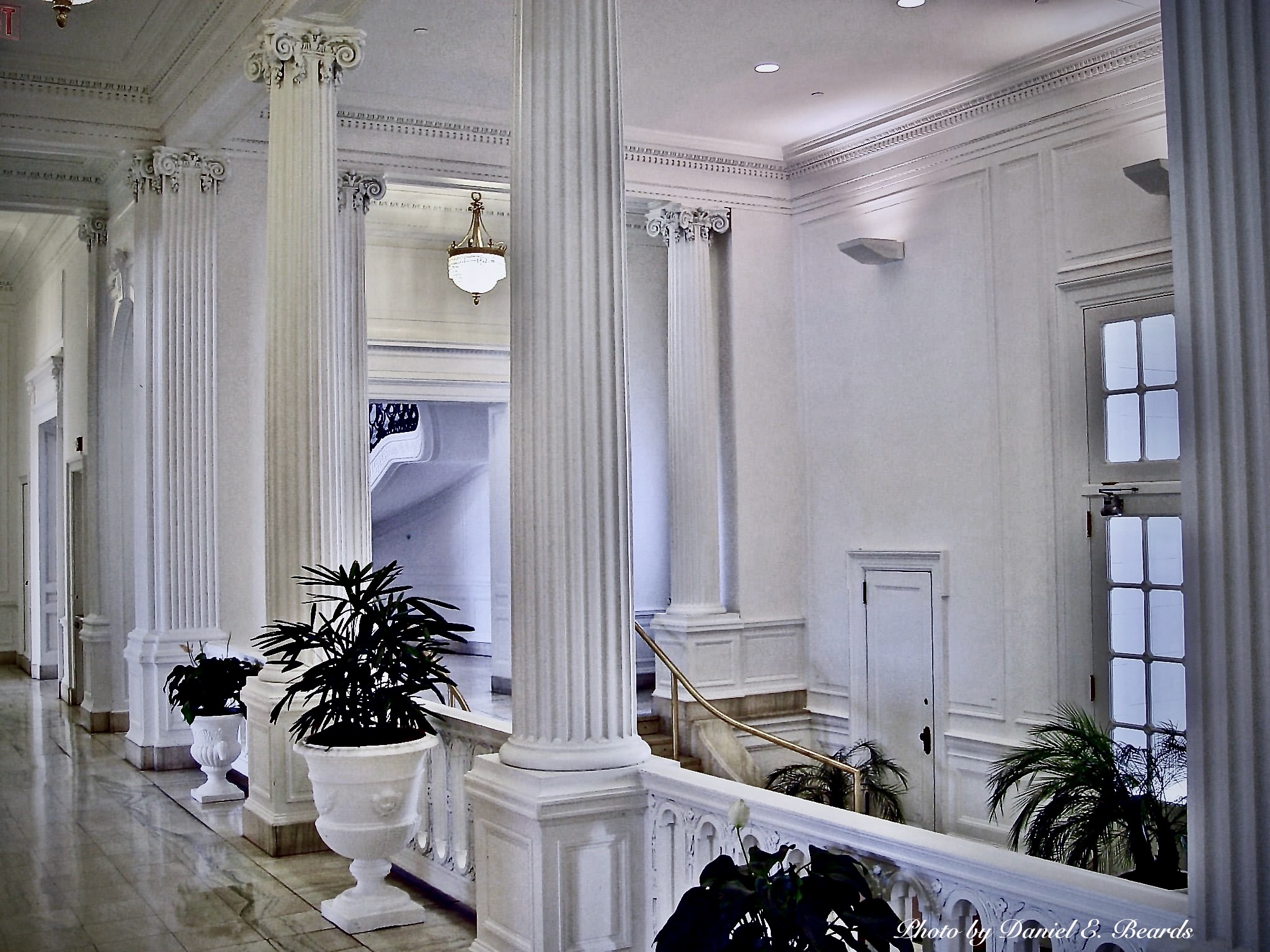 | dc.description | This photo shows the marble floored main hall looking west. Note the line of fluted Ionic columns whose capitals have little Versailles pendants. The door in the distance leads to the Grand Staircase. | |