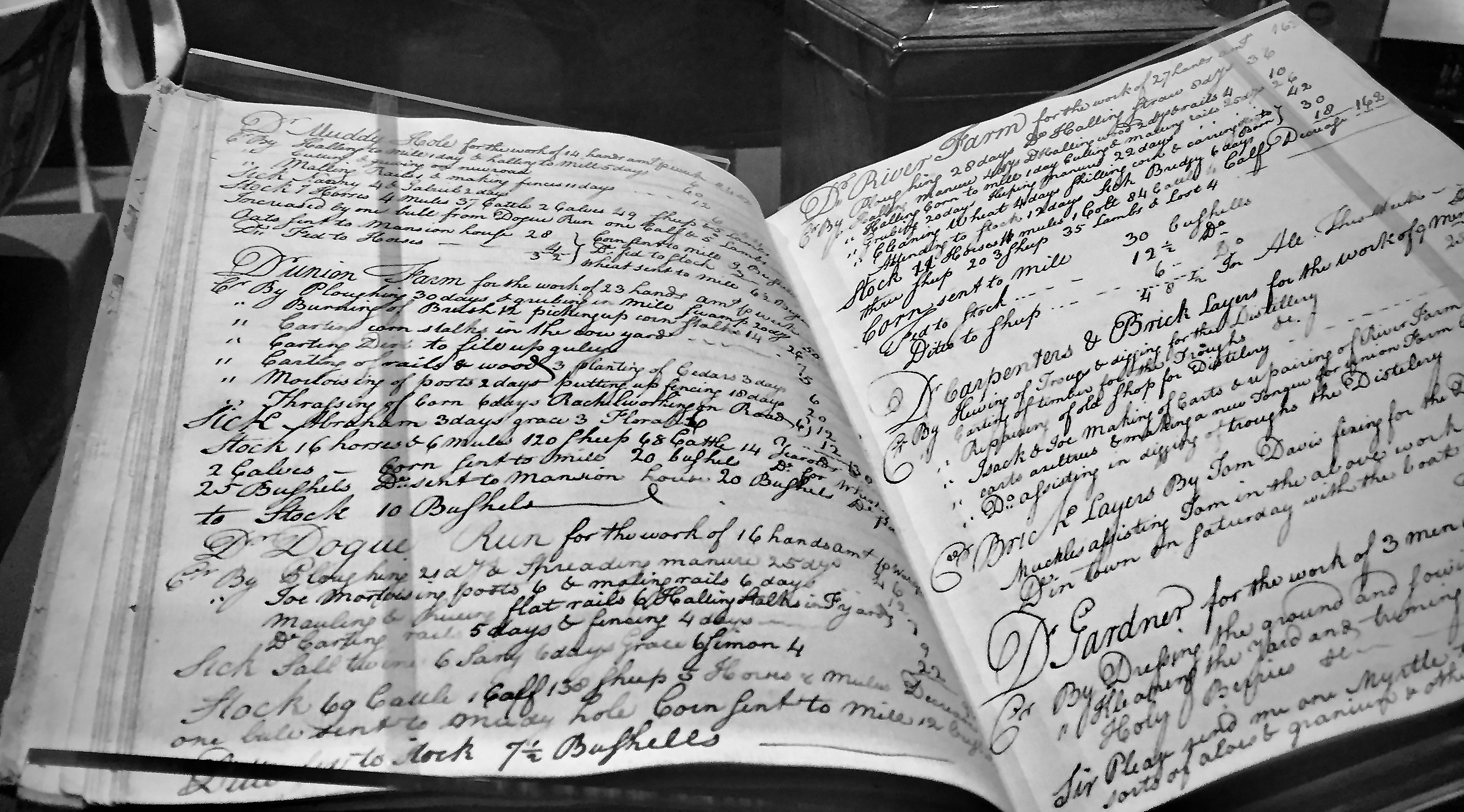 | dc.description | On display in the gallery is one of George Washington's Log Books. The log contained reports on his livestock, crops, maintenance and expenses for several of his farms and the mansion house. In addition it covered the productivity of his slaves for the period January 7 to September 19, 1797. | |