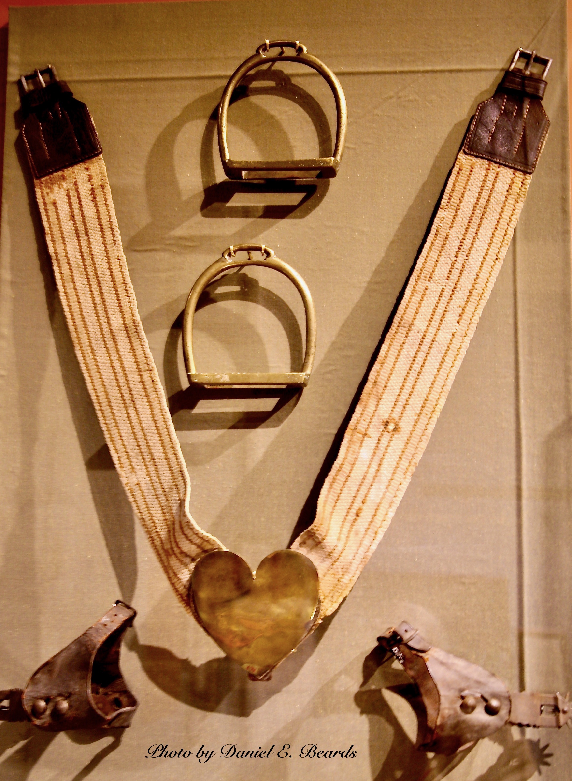 | dc.description | Stirrups and spurs were only two of the many pieces of equipment required by mounted soldiers. Outfitting regiments and officers with bridles, saddles, and other equipment as well as uniforms and weapons was costly. Often these expenses were borne by the individual rather than the army. In this picture are a pair of American brass Stirrups from the late 18th century, a pair of leather American Spurs also from the late 18th Century, and a brass, iron and leather horse plate also from the 18th Century. | |