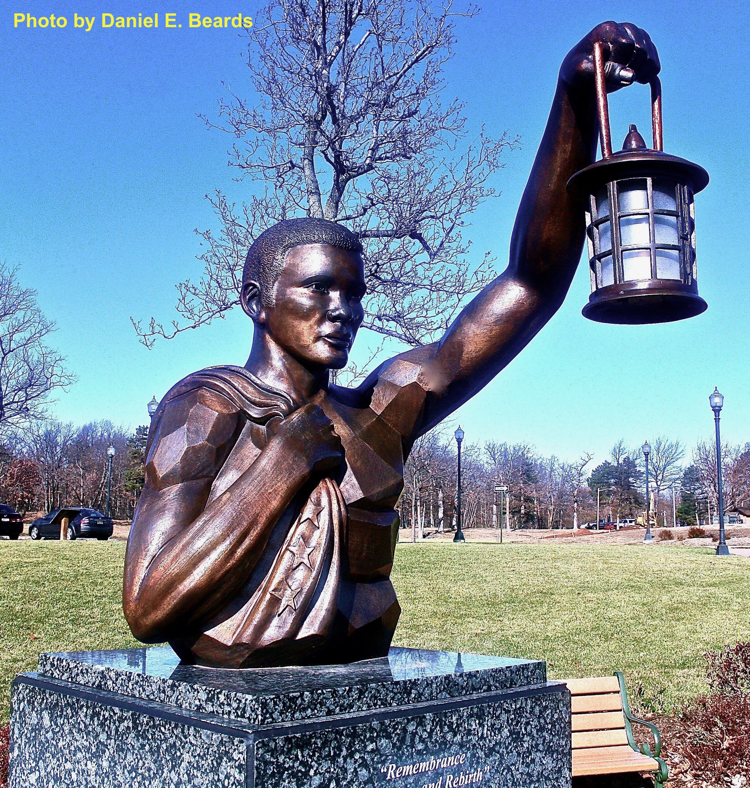 | dc.description | One of the elements of this memorial is a teenage boy holding a lantern and gazing toward the skyline with the words "Remembrance and Rebirth" on the pedestal. | |