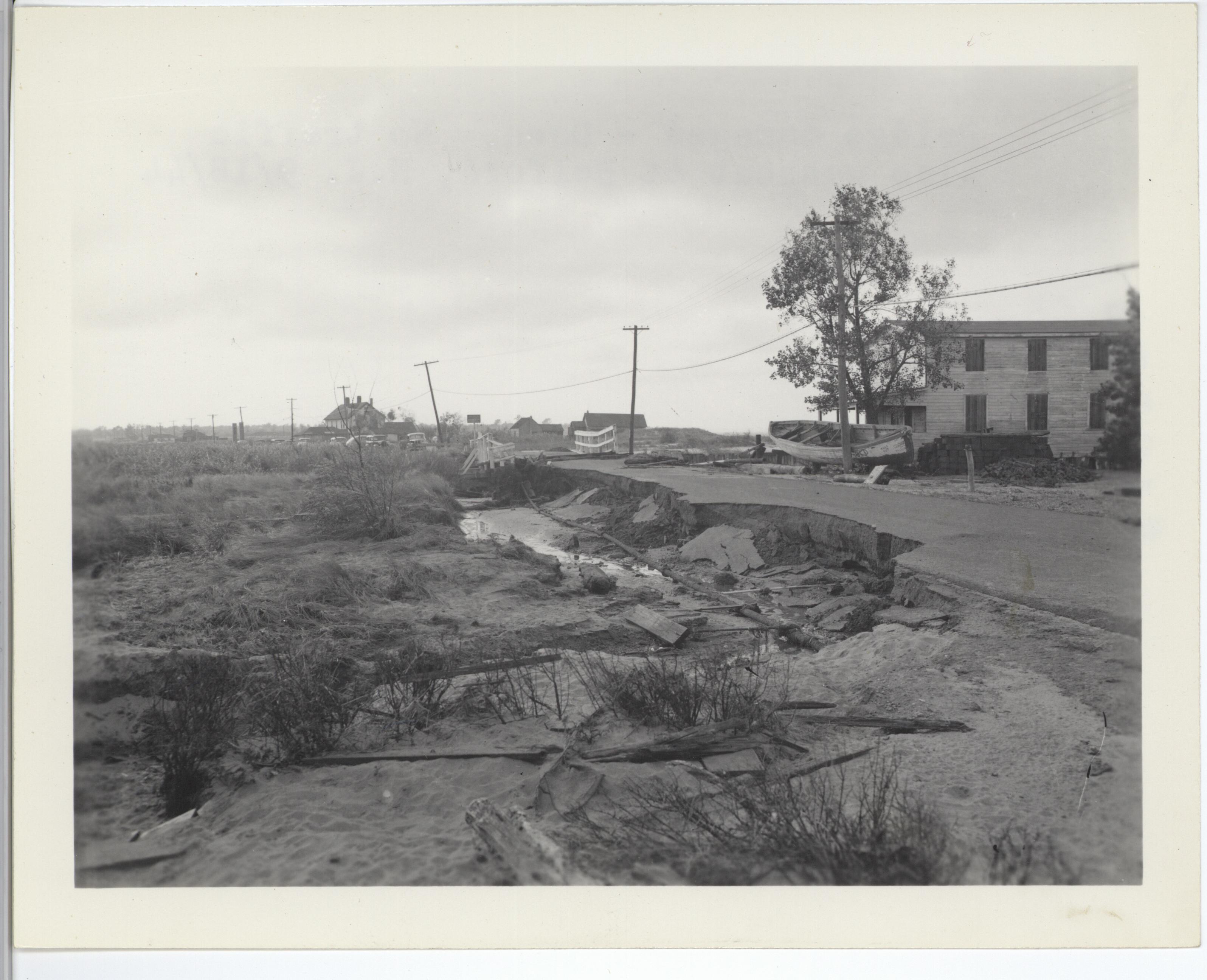 Reverse of Photo: Bridge damages, washout. No traffic.
