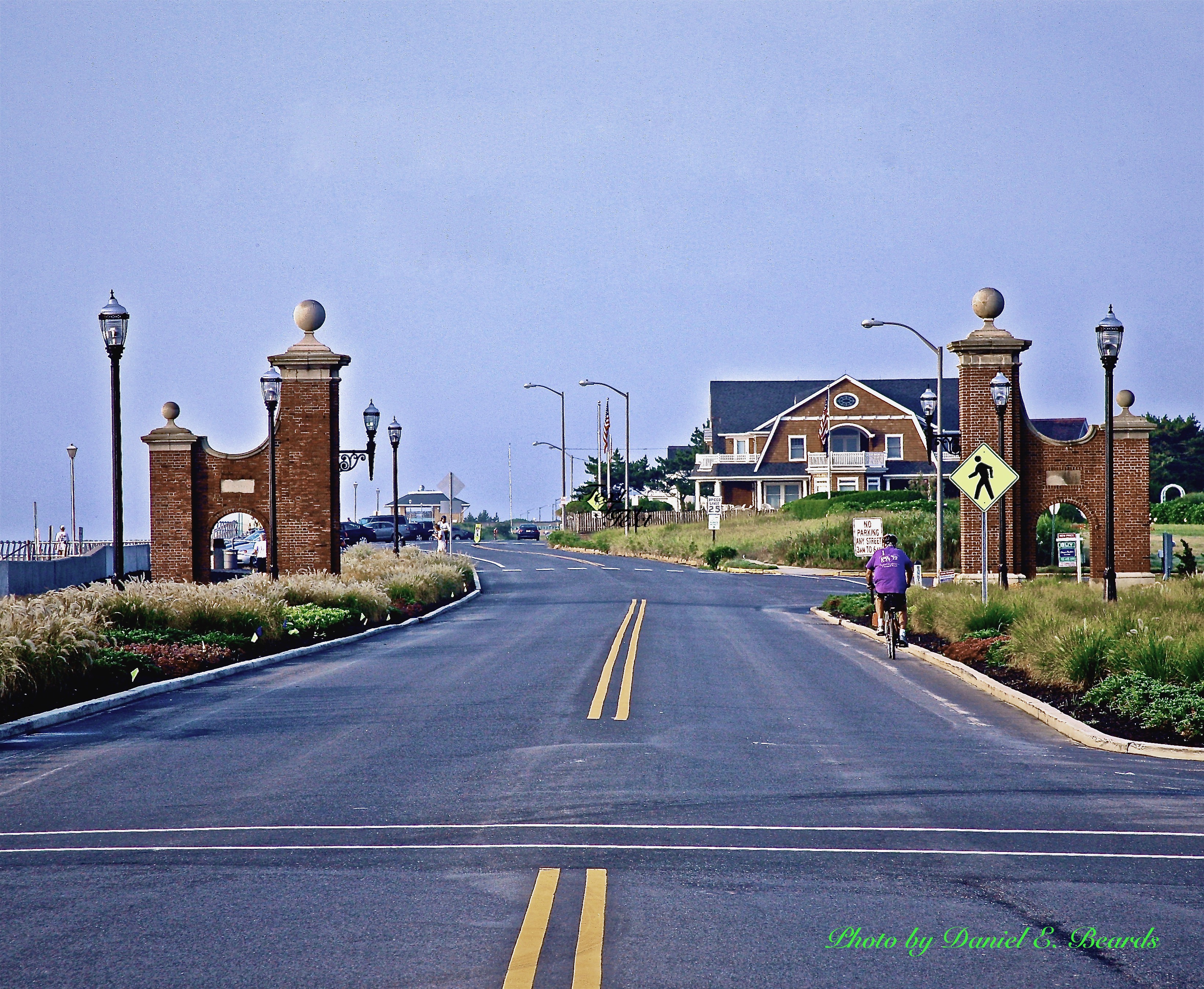 The gates, red brick portals at the entrance of town on Ocean Ave between Belmar and Spring Lake, were originally constructed by the Spring Lake Improvement Association in 1918. In 1921 bronze lanterns were donated to adorn the new gates.