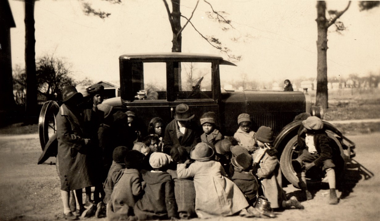 Back of Photo: "Ewing Park Elementary School, Ewing TWP. The County Librarian Tells Stories to the Children." Date unknown.