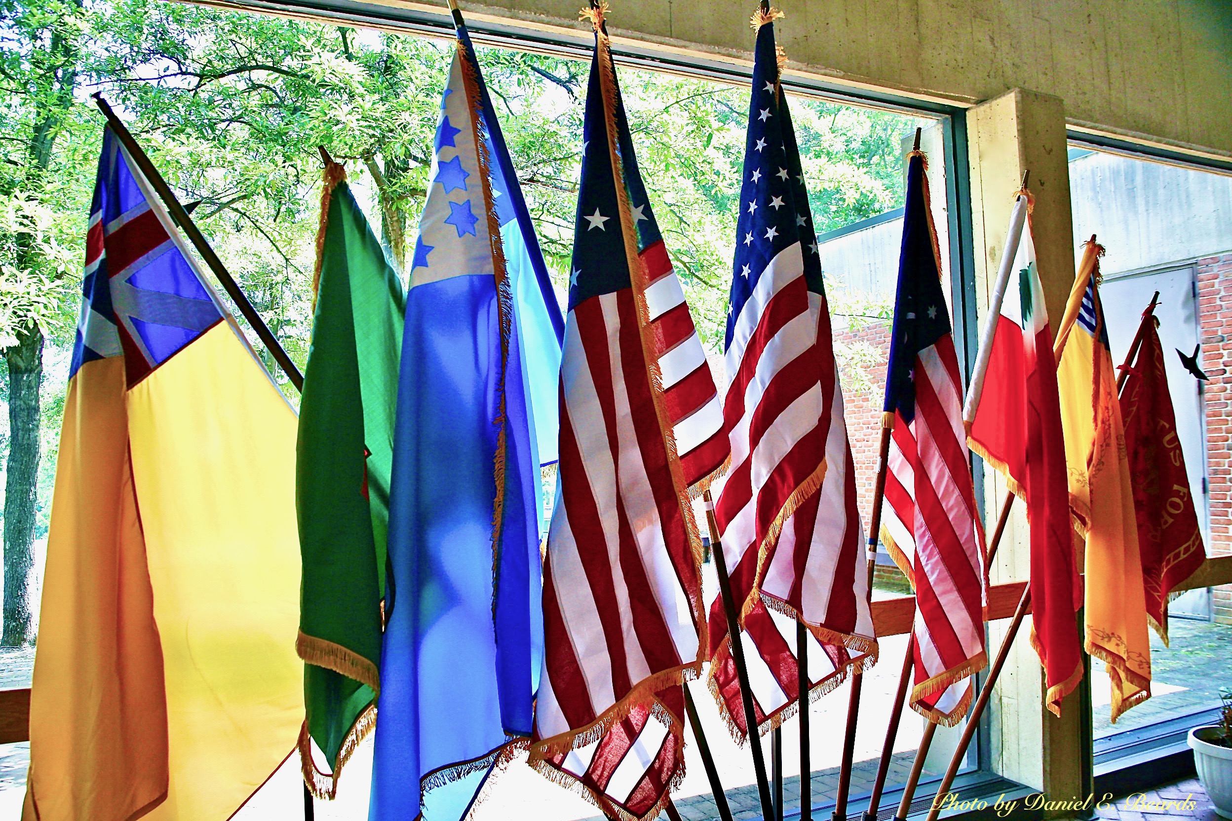 Display of American Flags inside the Visitor's Center at the Monmouth Battlefield Visitors Center