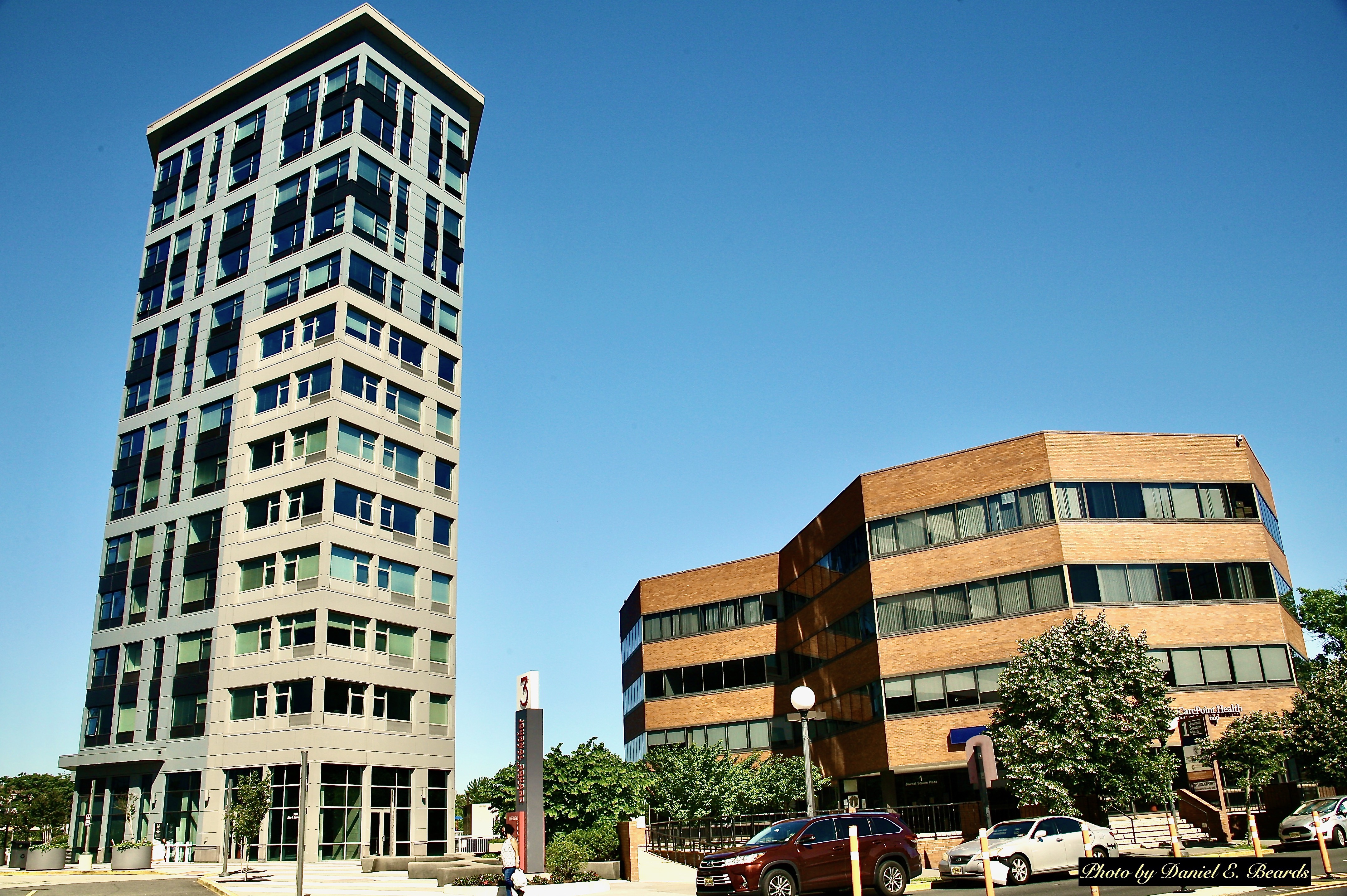 One Journal Square Plaza is a commercial office building while 3 Journal Square Plaza is a residential tower. Both buildings are located on Kennedy Boulevard across from the Stanley Theater.