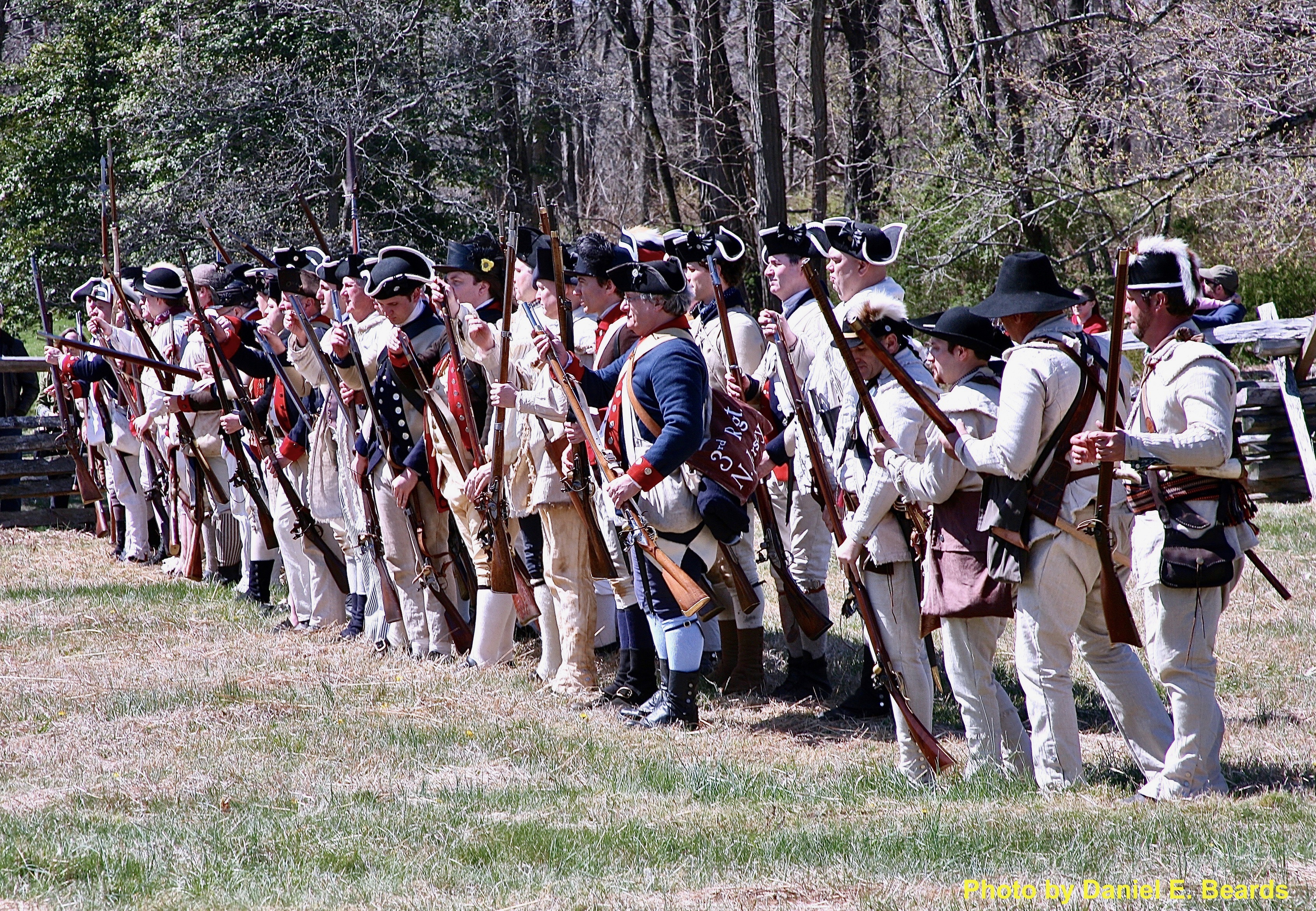 Firing a Musket, Musket Volley Fire, Reenactment of American Revolution Winter Encampment Site, American Revolution, Reenactment of Winter Encampment 1779 1780, Continental Army, American History, The Revolutionary War, U.S. History, U.S. Historic district Contributing property, New Jersey Register of Historic Places, Jockey Hollow, George Washington, General George Washington, National Historical Park, National Park Service, NPS, Harding Township, Morristown, Morris County, Mendham NJ, Morristown National Historical Park, The Skylands, NJ Skylands, New Jersey Skylands, Jersey Skylands, New Jersey, NJ, Jersey, The Garden State